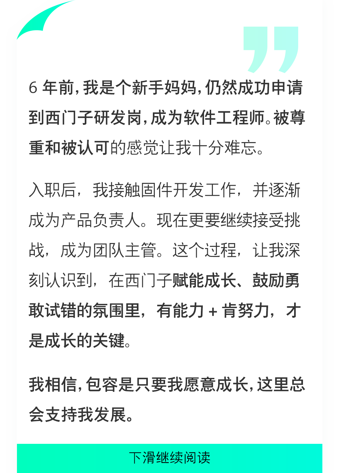 6年前,我是个新手妈妈,仍然成功申请到西门子研发岗,成为软件工程师。被尊重和被认可的感觉让我十分难忘。