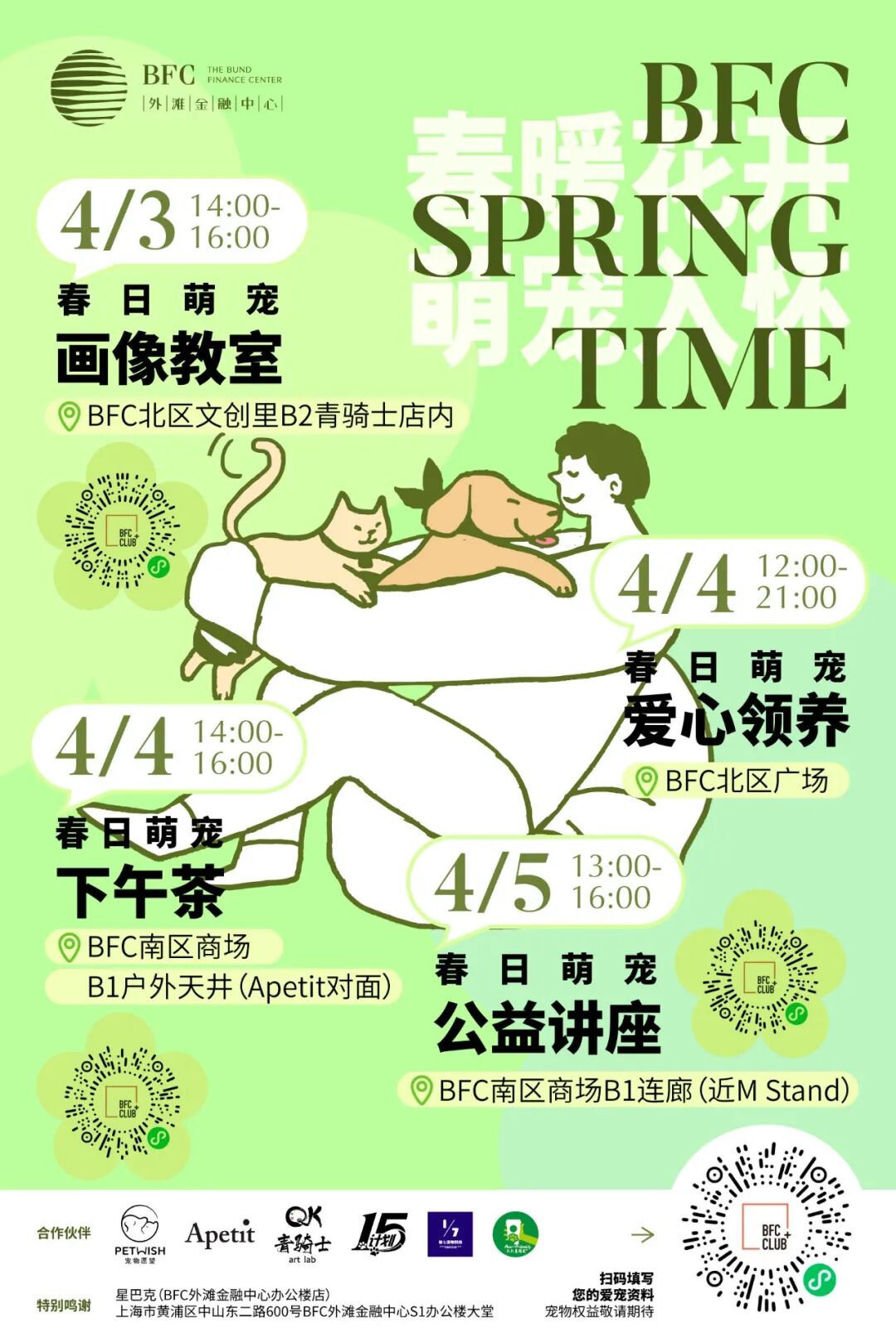 BFC联合15年计划举办春日萌宠公益讲座,《训犬的秘诀》、《春季宠物养护知识和皮肤保健》、《犬猫常见疾病的营养学管理》,邀请业内知名讲师分享养宠必备知识,养宠必学。