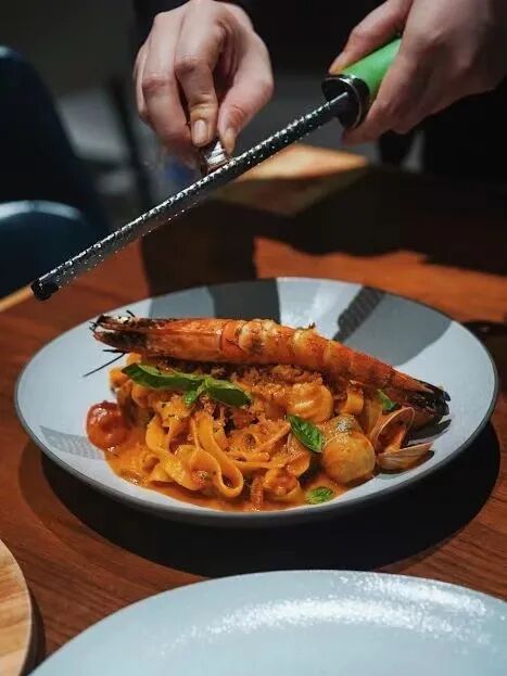 早午餐的开场鸡尾酒是必须,餐厅特调的鸡尾酒,是享受春日休闲时光的最好开头。早午餐的特点就是吃什么都不过分!12小时慢煮鸭腿配黑加仑鸭肝,搭配大虾海鲜扁面,才没有辜负这春光明媚!