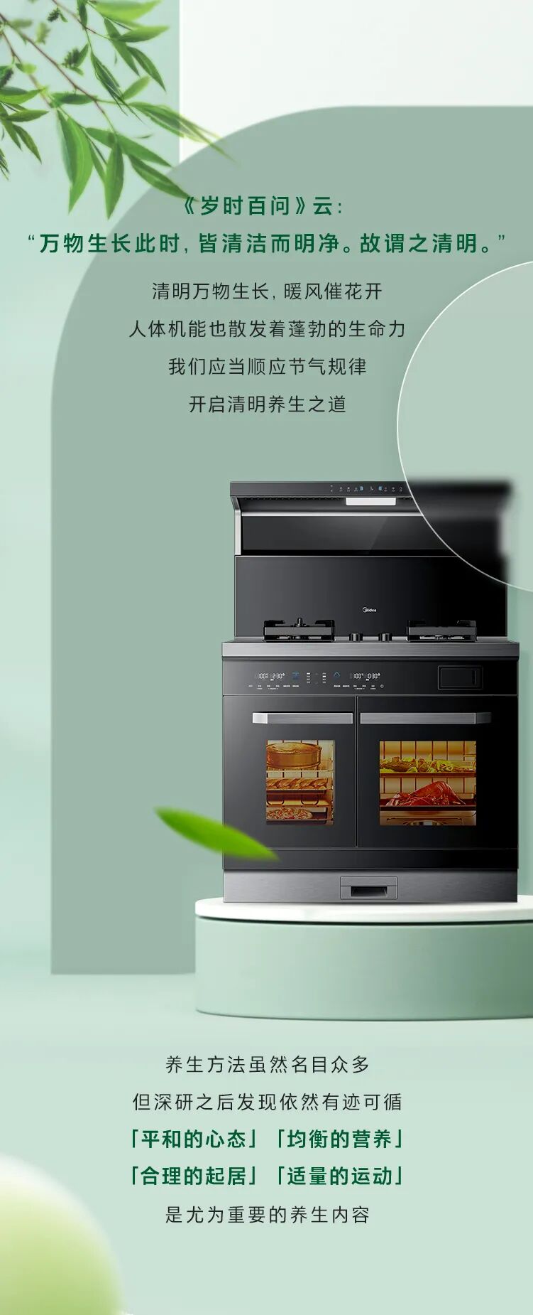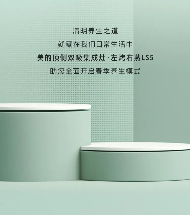 推荐:「点击切换GIF」查看清明养生四部曲,借此宣传美的顶侧双吸集成灶L55的强大功能。