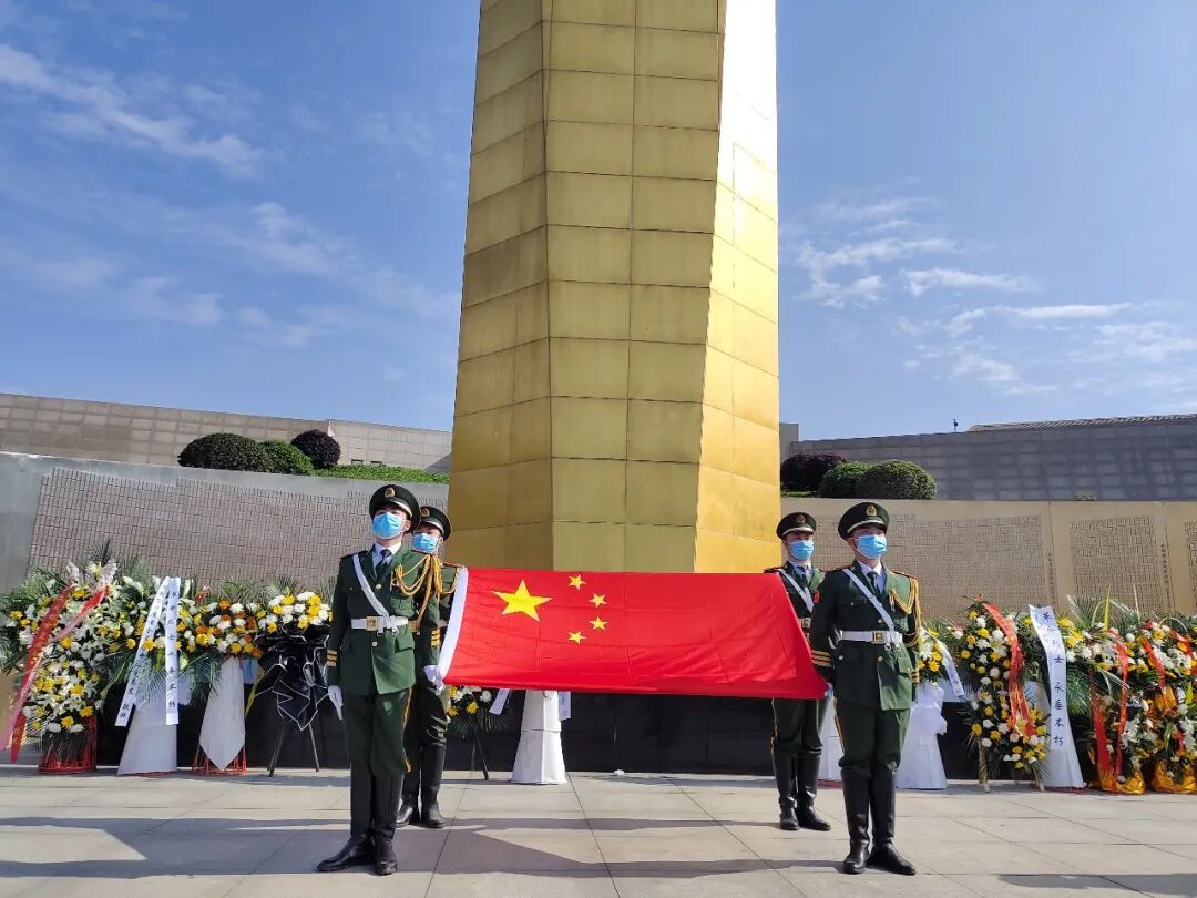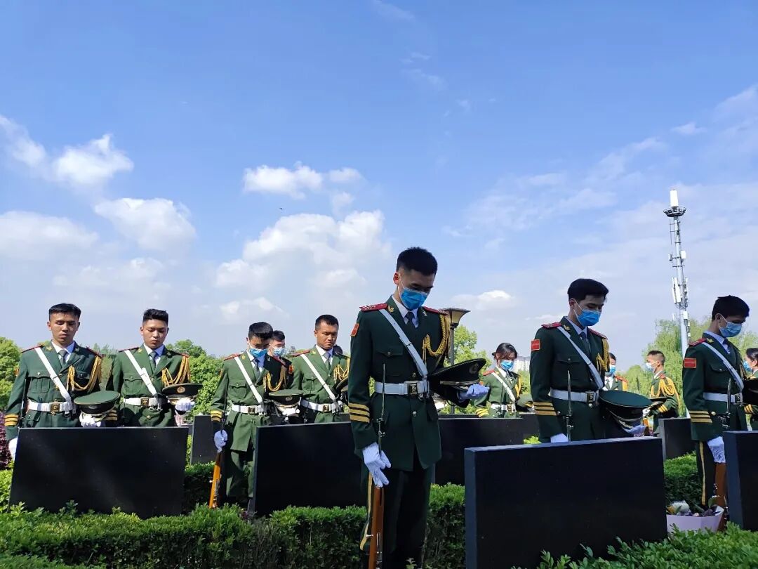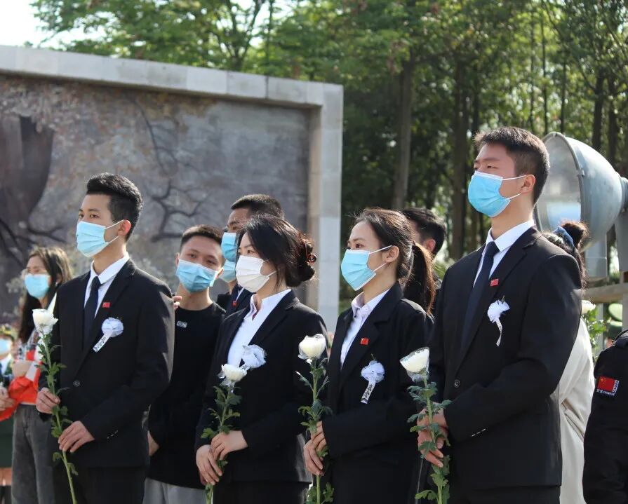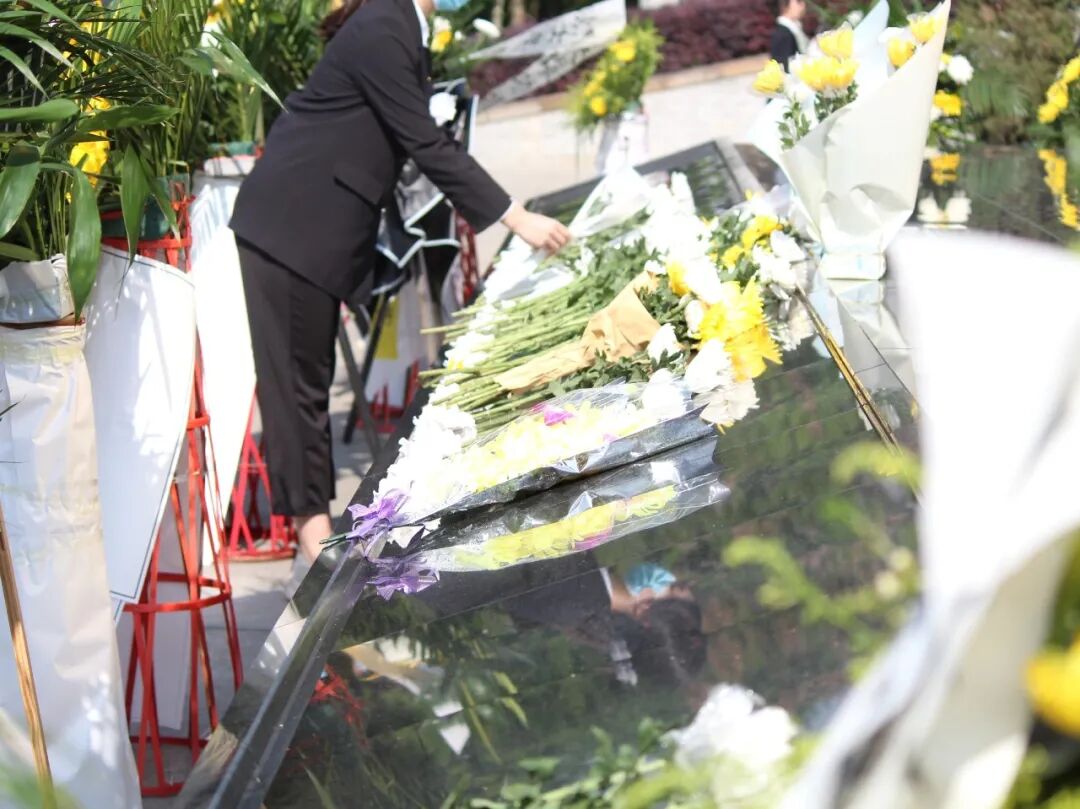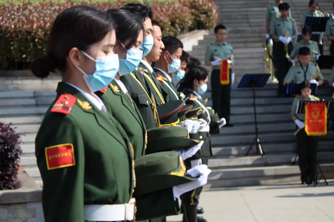 随着军乐团吹响绵长且令人思绪沉重的《献花圈进行曲》,各高校国旗护卫队队员怀着崇敬的心情为革命烈士敬献花篮,表达对革命烈士的无限哀思以及崇敬之心、感念之志。