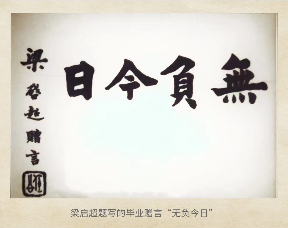 1925年,时任北师大校董的梁启超先生手写“无负今日”寄予毕业生;