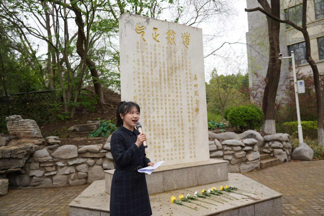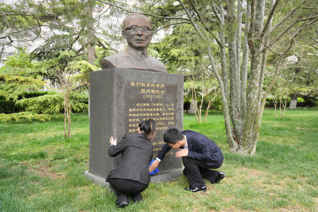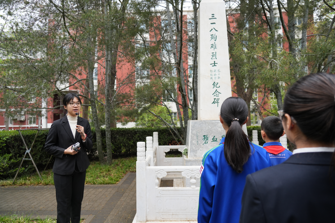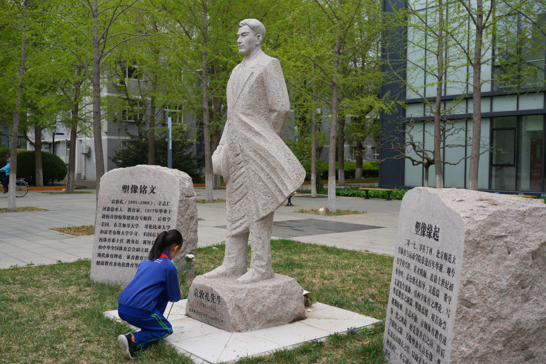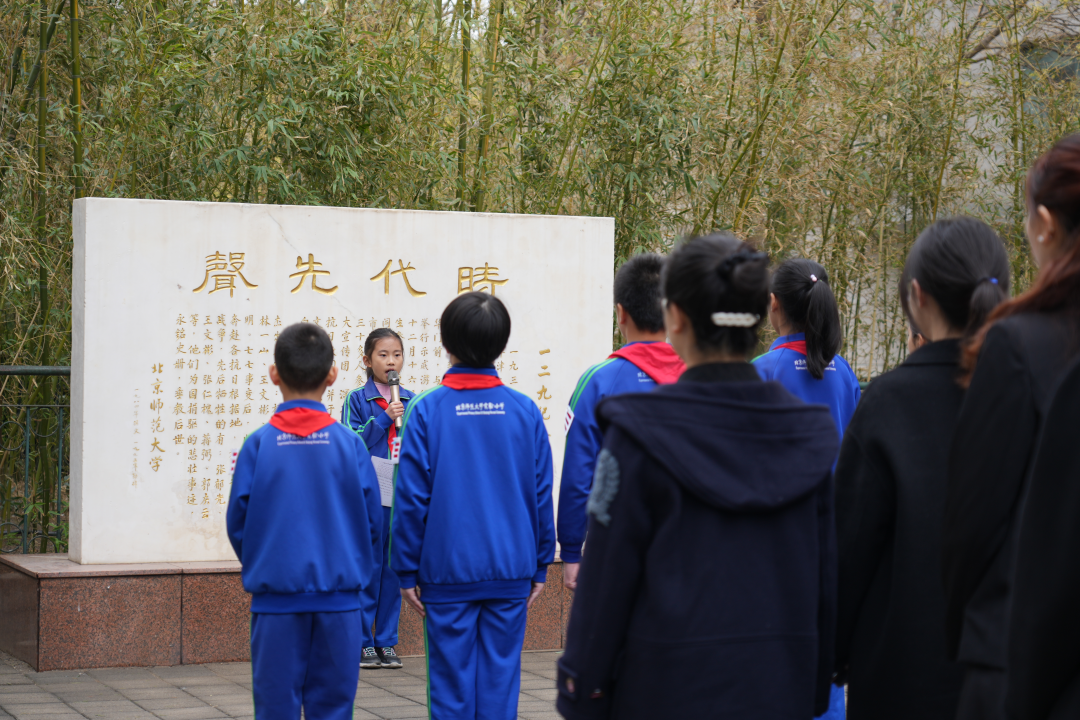 “现重建此碑,冀我新中国青年,继承烈士精神,发扬革命传统,为振兴中华贡献青春。”这是位于北师大学六楼、学七楼的中央“三·一八”殉难烈士范士融、刘和珍、杨德群纪念碑的一段碑文。碑座正面镌刻着启功先生写的“碧血丹心”四个字。