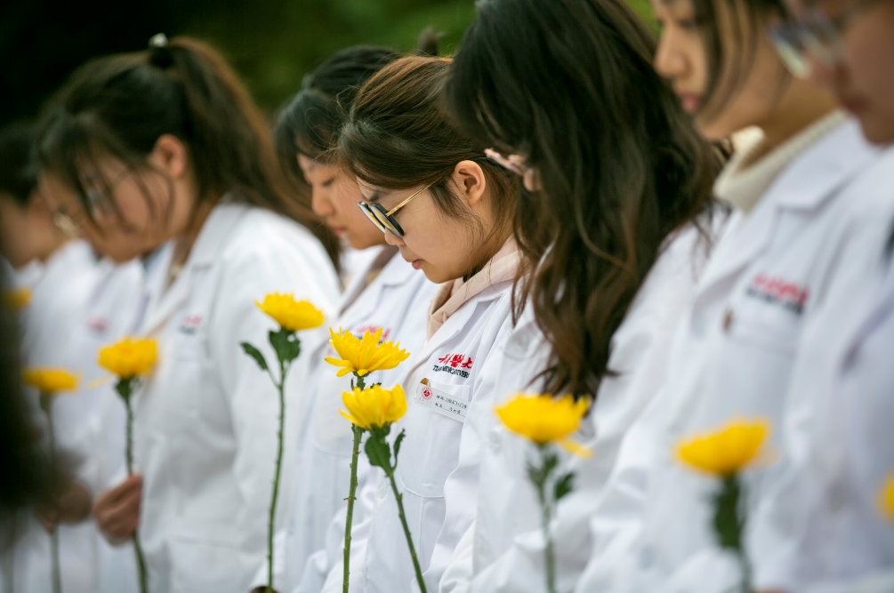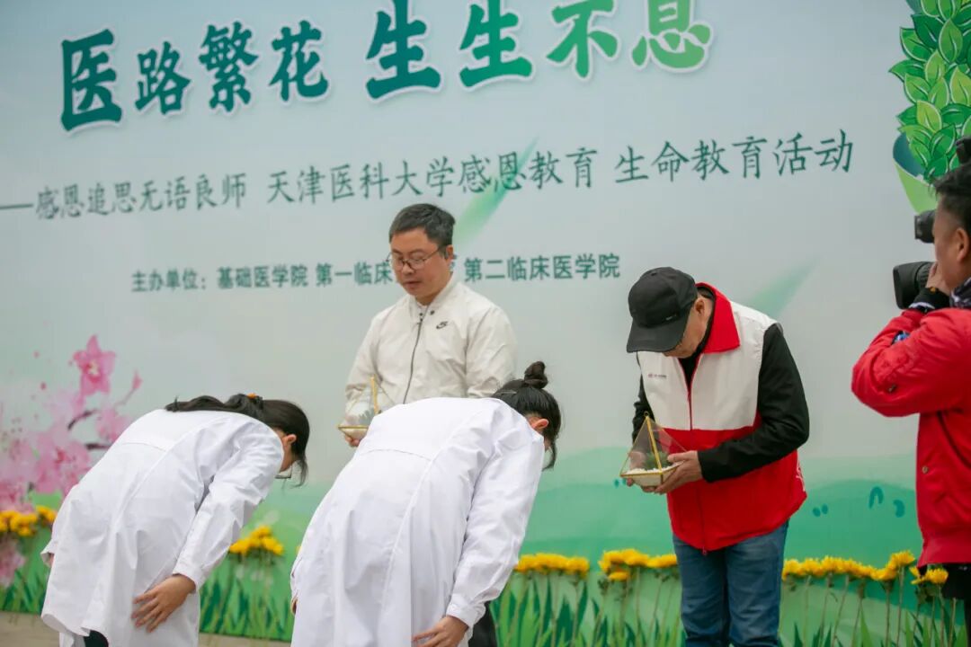 默哀、献花、追思、致谢、宣誓……4月2日,天津医科大学感恩教育、生命教育活动暨“医路繁花 生生不息——感恩追思无语良师”主题活动在校园世纪大道举行。这一特殊的医学生思政课,既引生命元素入《局部解剖学》课程,也蕴医学特色于思政教育之中。