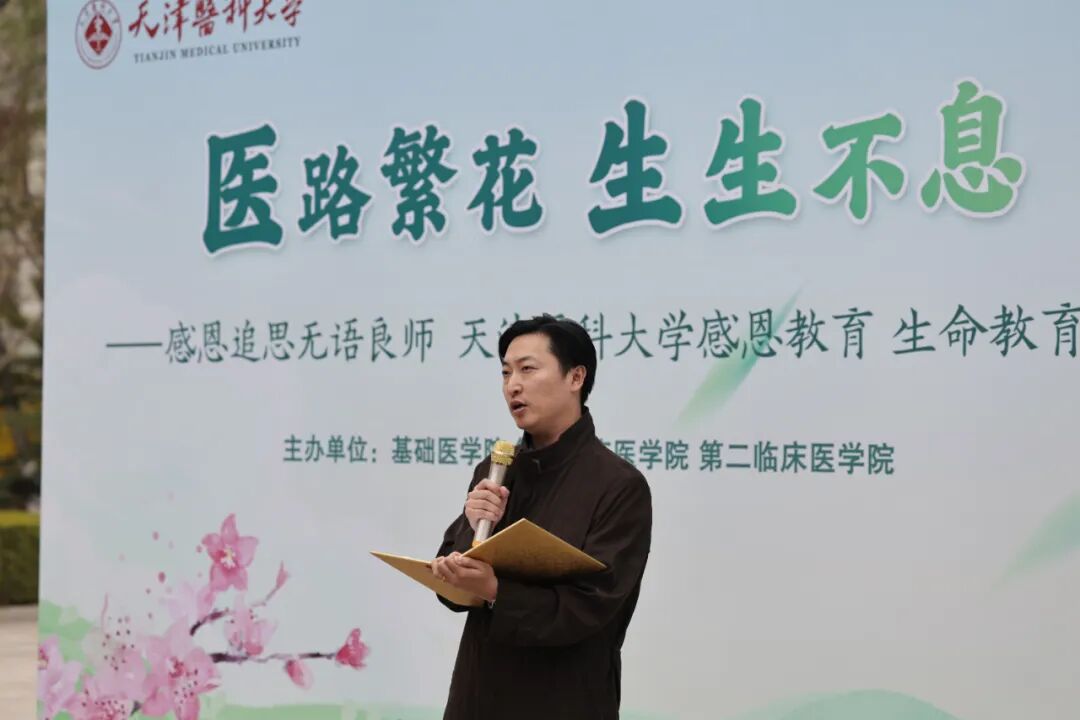 医学人文学院医学伦理与法学系副主任、天津市医学伦理学会秘书长唐健表示,开展感恩教育和生命教育是积极倡导医学教育和人文教育融合发展的有效举措,希望同学们怀揣着一颗赤诚之心,立志成才,报效祖国。