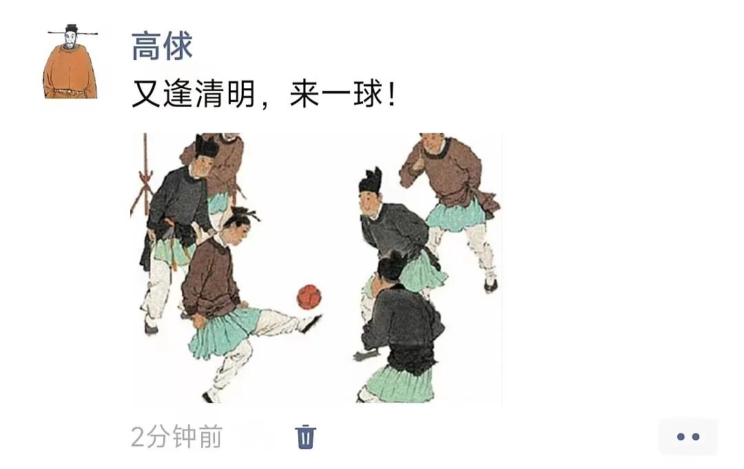 清明时节在仲春与暮春之交,正值天朗气清,春和景明之时,户外活动十分丰富,蹴鞠就是其中一项。看过《水浒传》的朋友都知道,高俅蹴鞠技艺十分高超,甚至借此到达权力巅峰。
