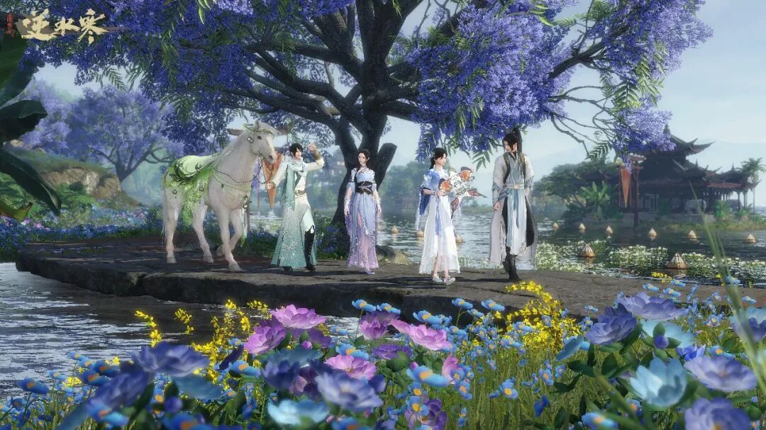 同门与江湖故友共赏江湖美景,完成春日同行任务后,即可获得专属称号【也无风雨也无晴】。