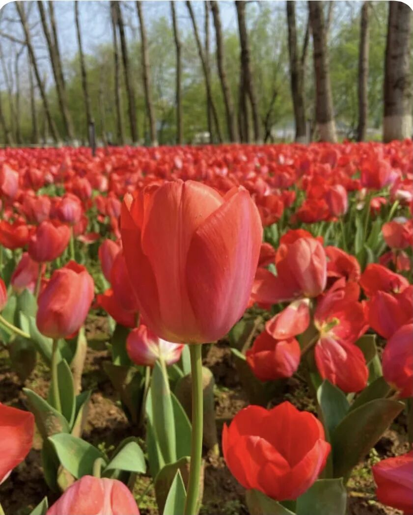 在广场共赏春日郁金香