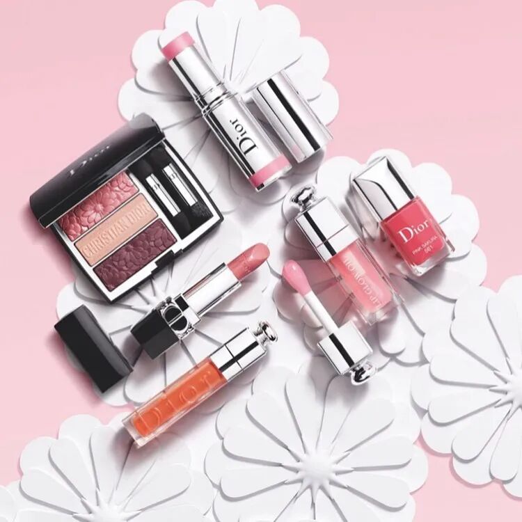 DIOR 2021年春季彩妆PURE GLOW系列,产品包括:眼影、唇线笔、唇蜜、指甲油等。