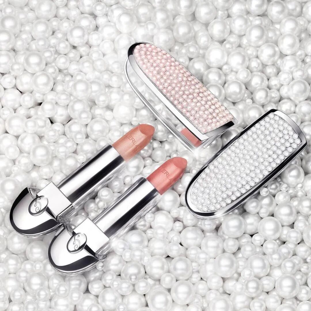 宝石唇膏壳用到珍珠元素,选用白珍珠和粉珍珠镶在外壳上。唇膏色号分别是#07 Nude Coll、#76 Pink Coll,膏体上带着细密的珠光细闪。