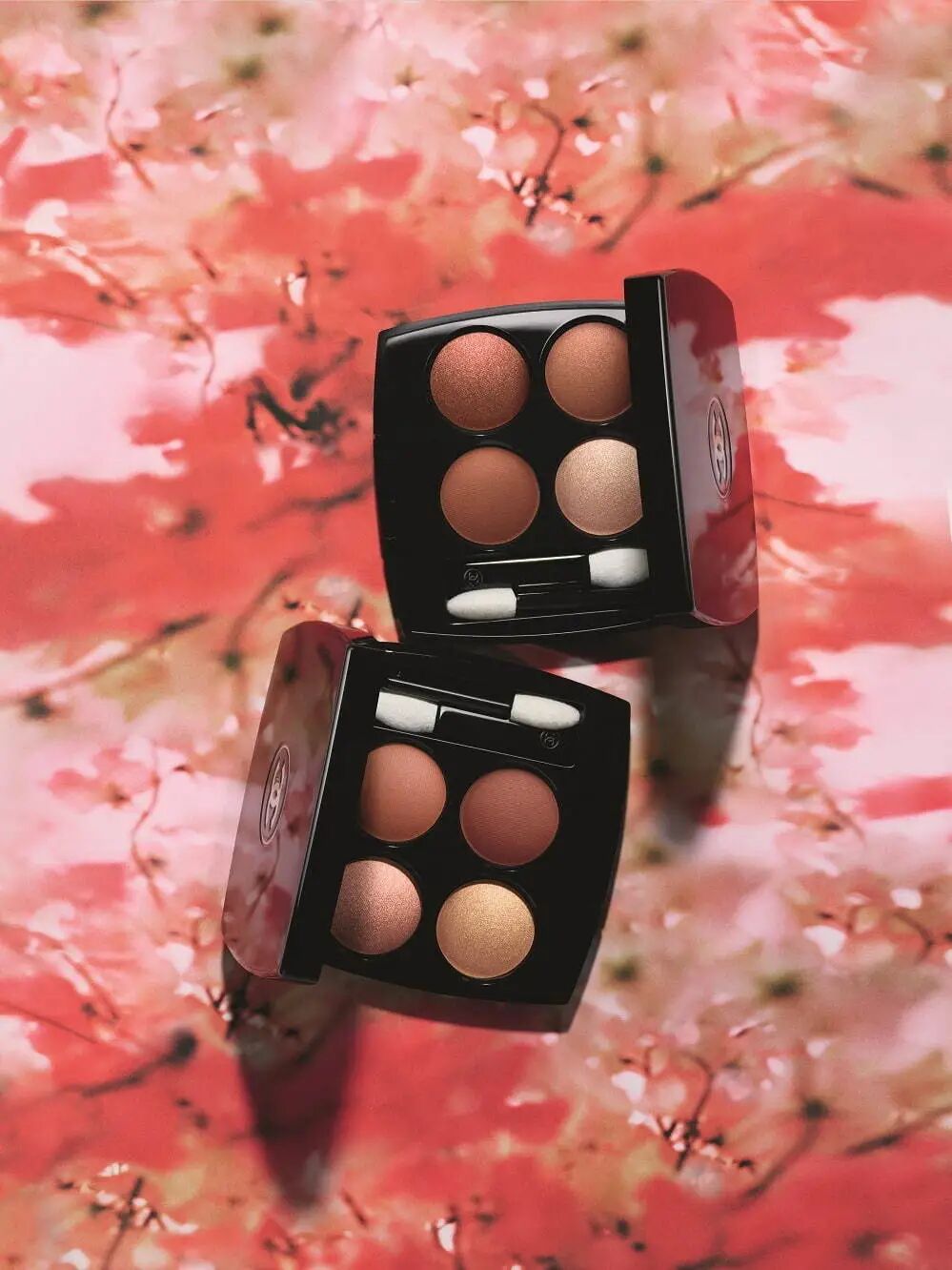 CHANEL 2021年Les Fleurs de Chanel系列,产品包括:4色眼影盘、双色高光腮红、唇膏、唇釉、指甲油等。