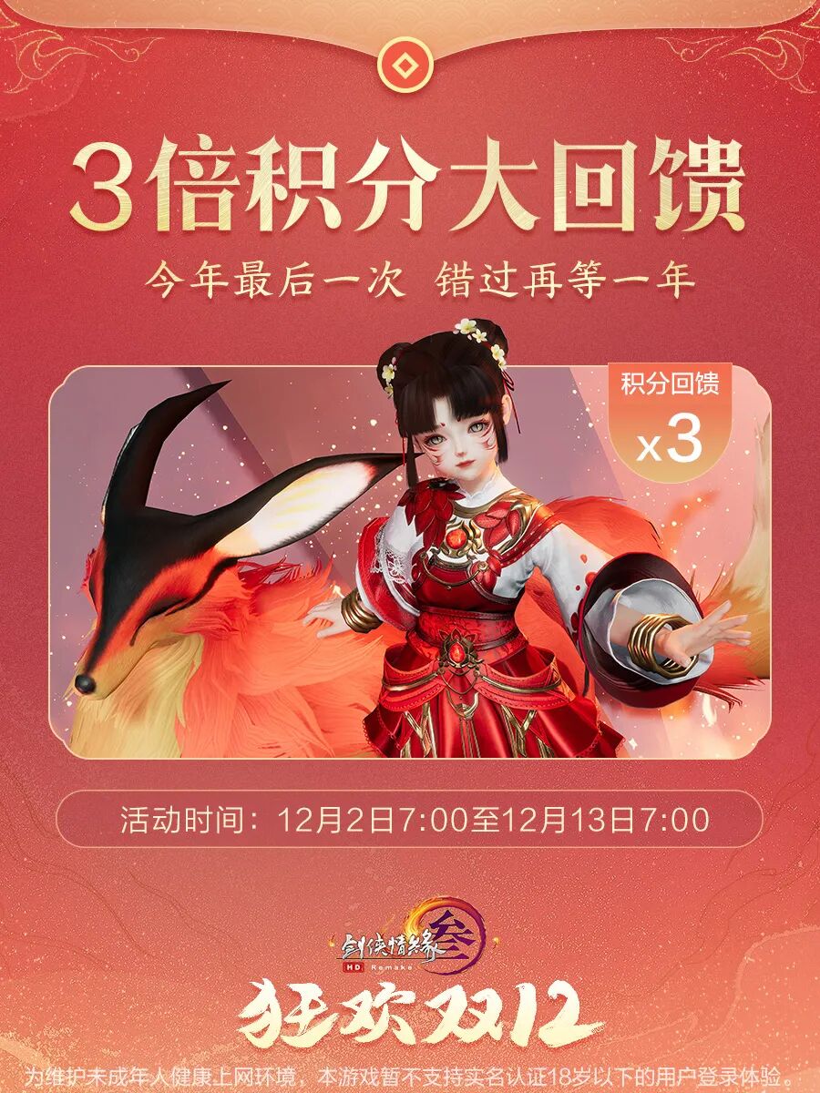 剑网3狂欢双十二今天开启啦