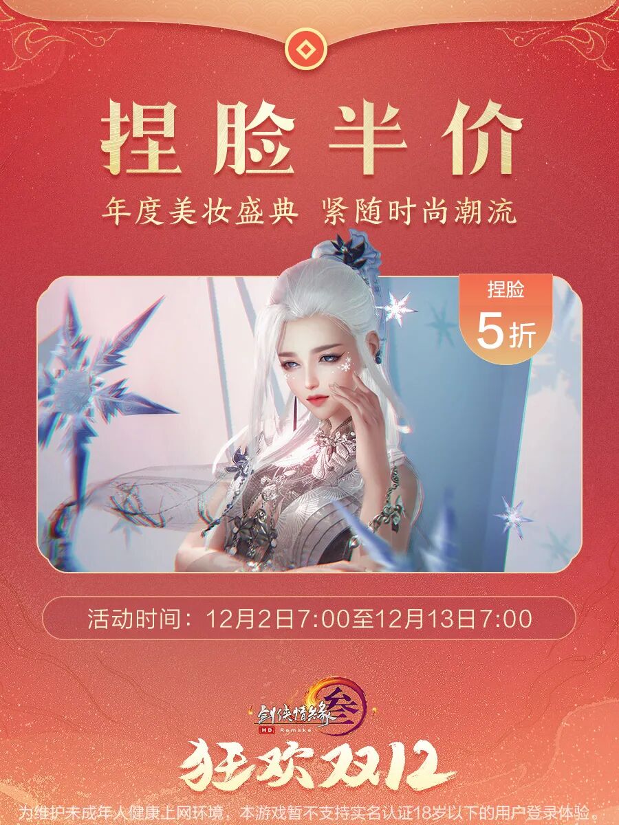 全新妆容·肤色·珠光,12月2日7:00起永久上架,售价5,000通宝,可享受“狂欢双十二”特惠福利