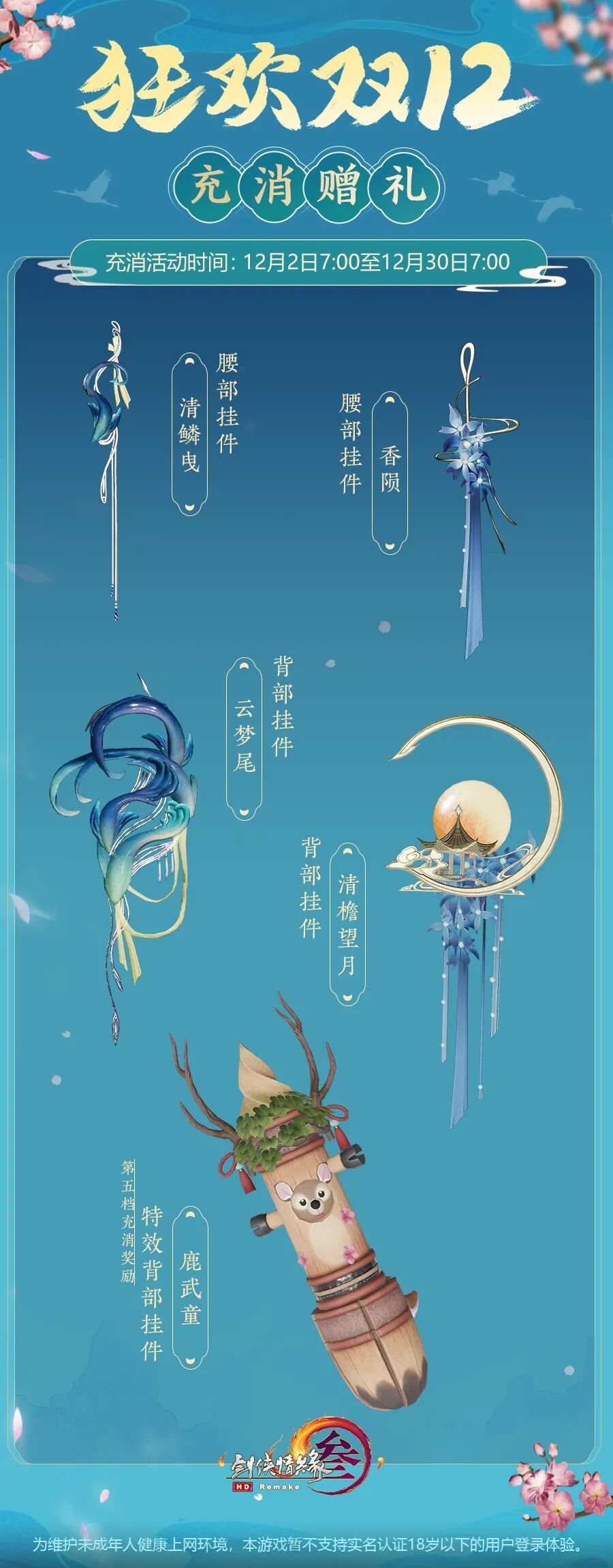 60/180元:可获得腰部挂件“清鳞曳”与“香陨”二选一。