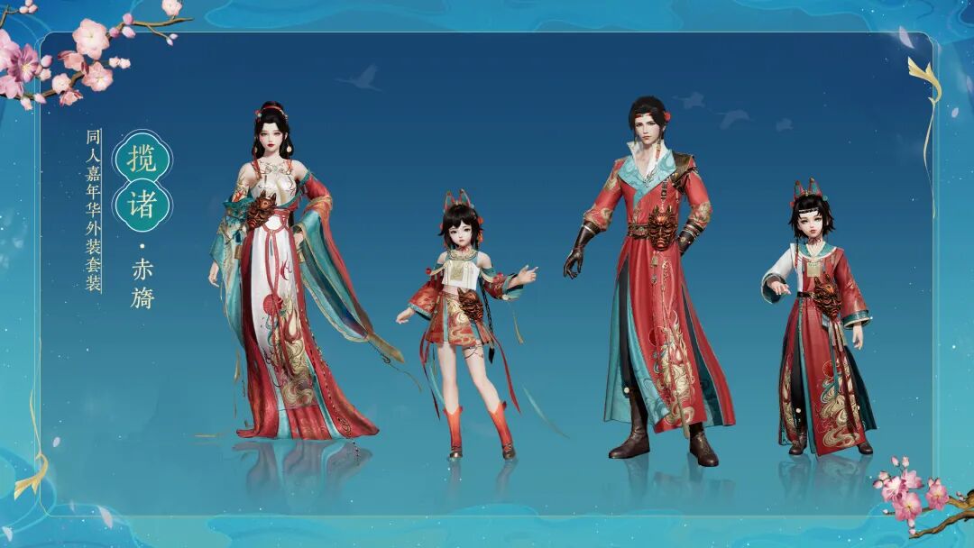 应广大江湖侠士的热切期待,本期同人套装“揽诸”偏色“赤旖”新增标准版上架(外装抽奖的时间也会顺延至20:13开启),其余三款偏色也均有标准版与豪华版两款套装供侠士随心选购!