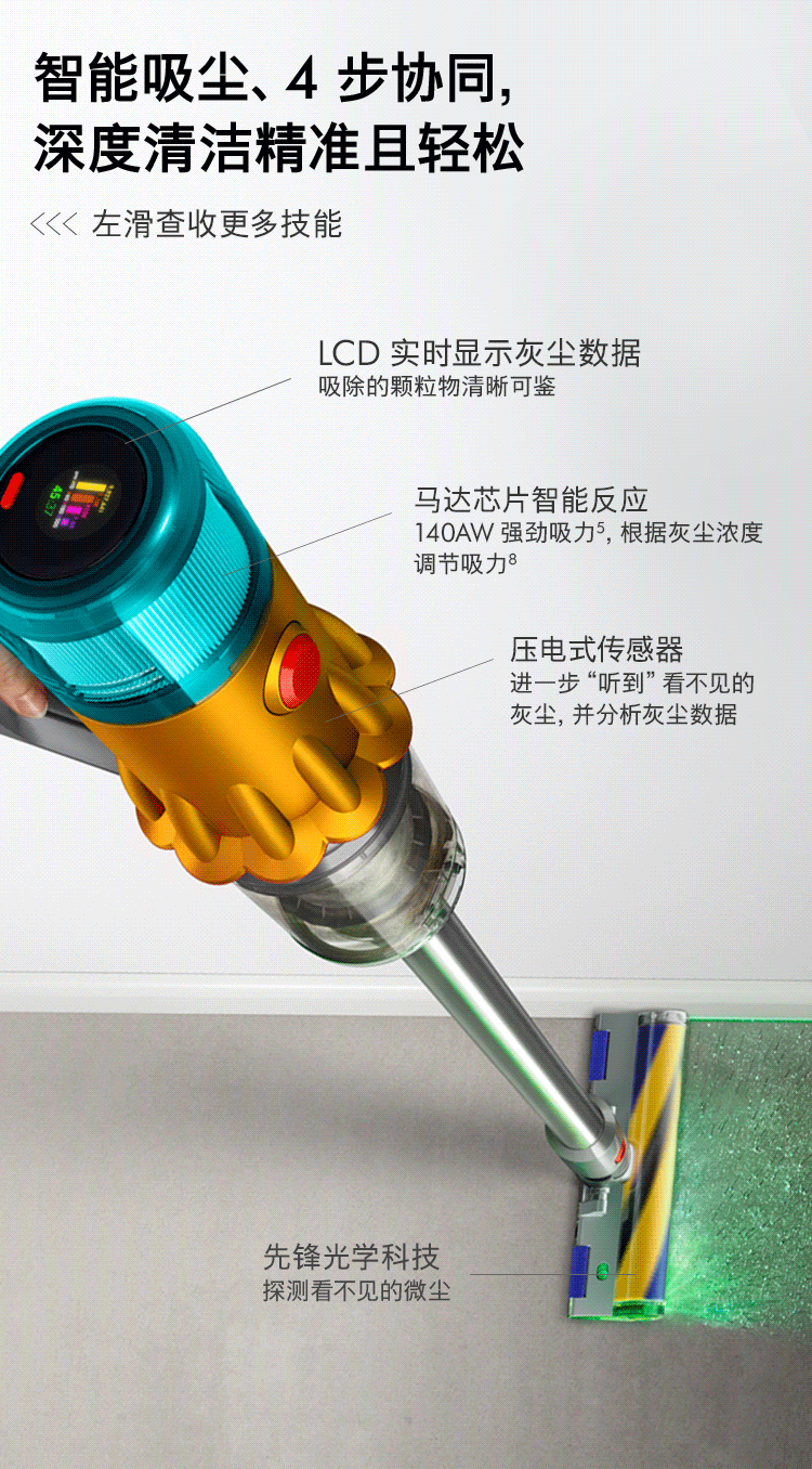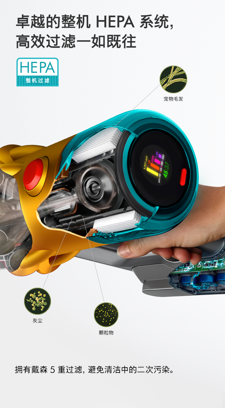 3.根据戴森内部测试数据 (在亚克力板以及液晶显示屏上的测试)。