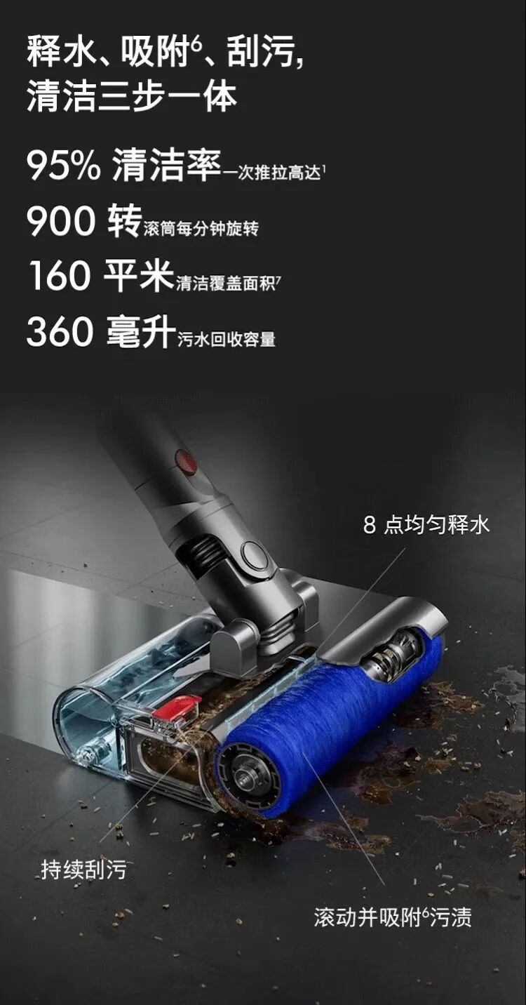 7.此计算结果基于清水箱一次满水的状态下,以每秒钟 0.5 米的速度无返复清洁的结果。实际清洁面积,基于使用习惯及地面情况可能有所不同。