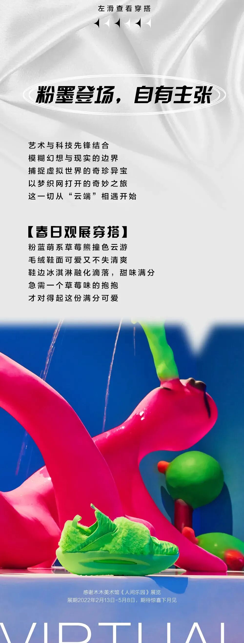 推荐:李宁通过“前景左滑”的交互形式,展示春日COTD穿搭、春日观展穿搭和春日漫游穿搭,借此吸引大家购买新品。