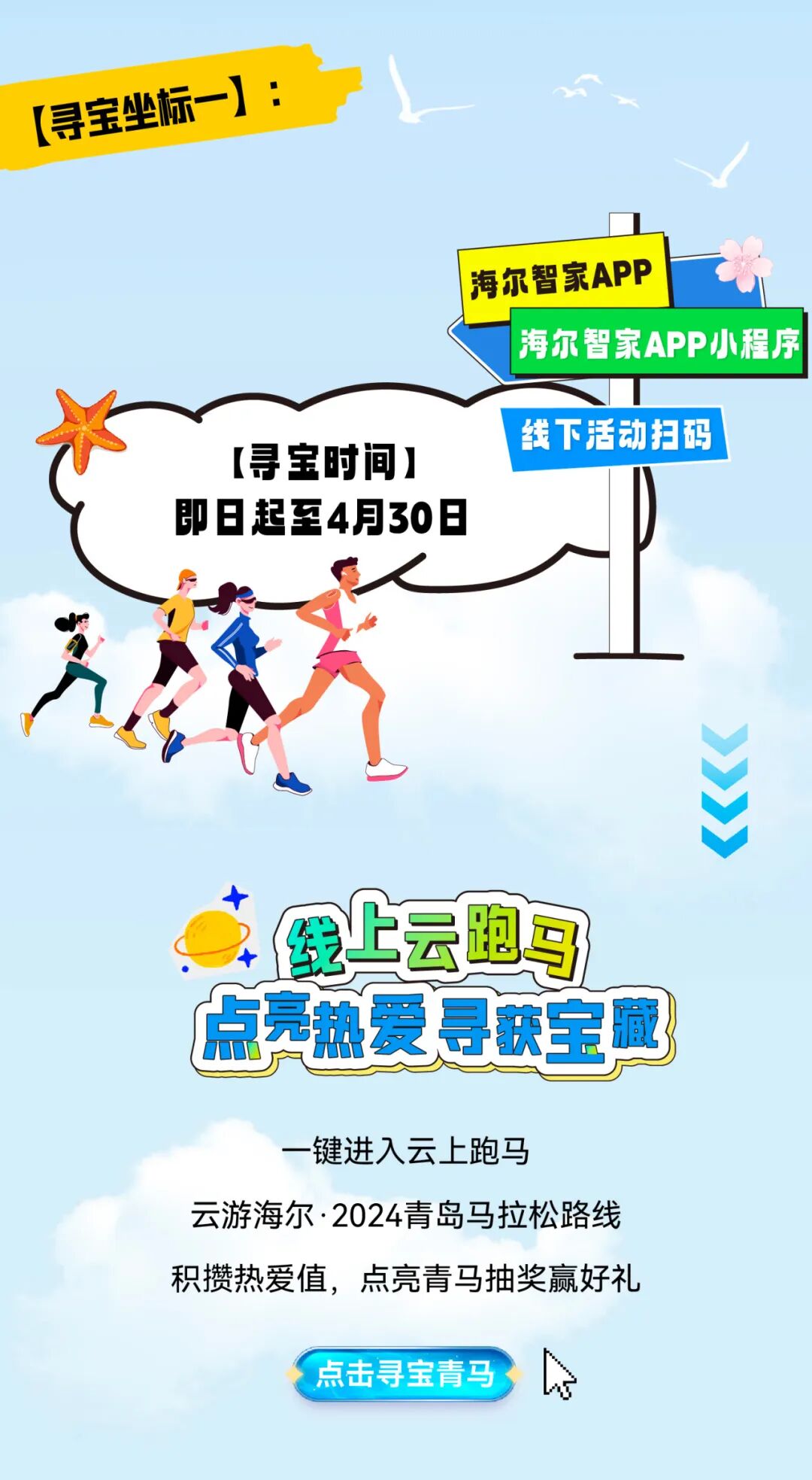 推荐:多个平级「点击展开」海尔·2024青岛马拉松寻宝攻略的活动内容和参与方式,吸引读者参与活动并有机会获得奖品。