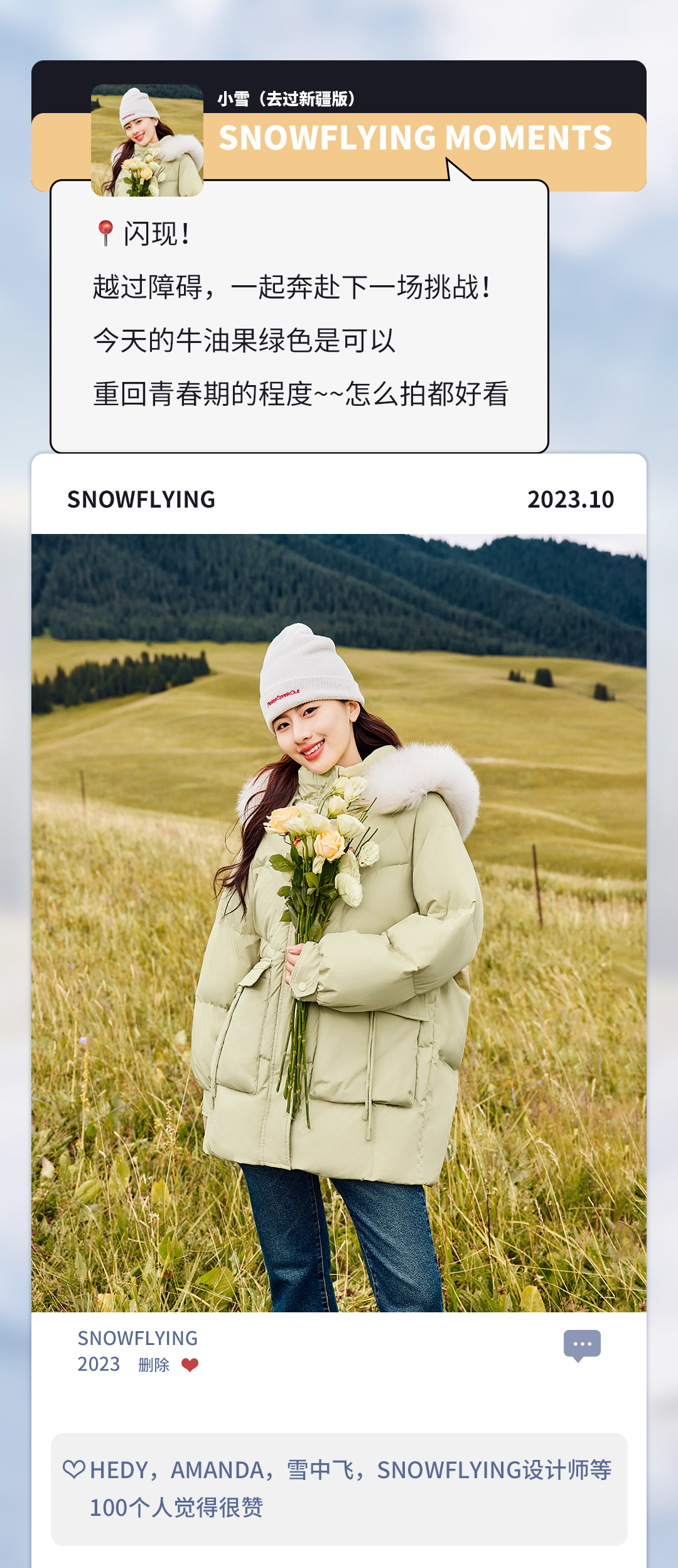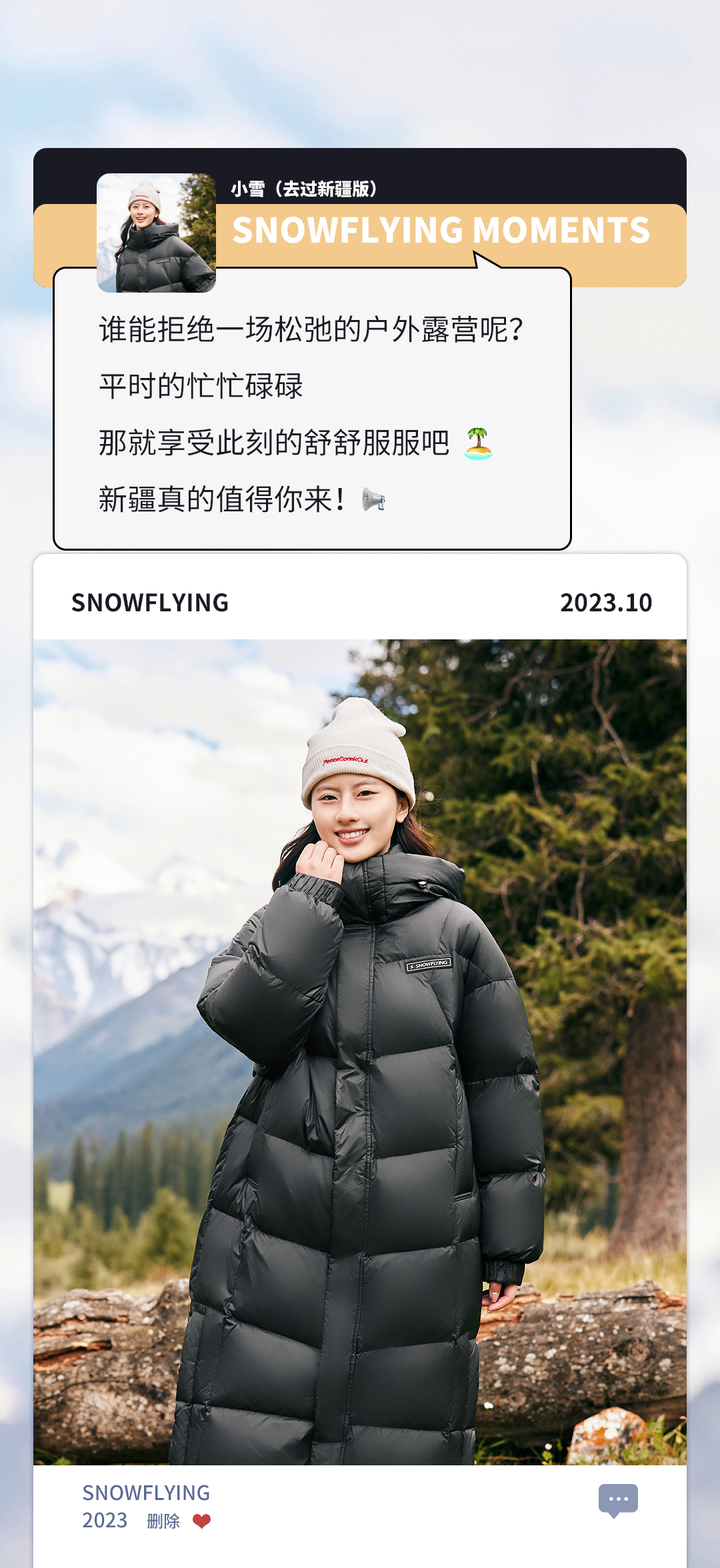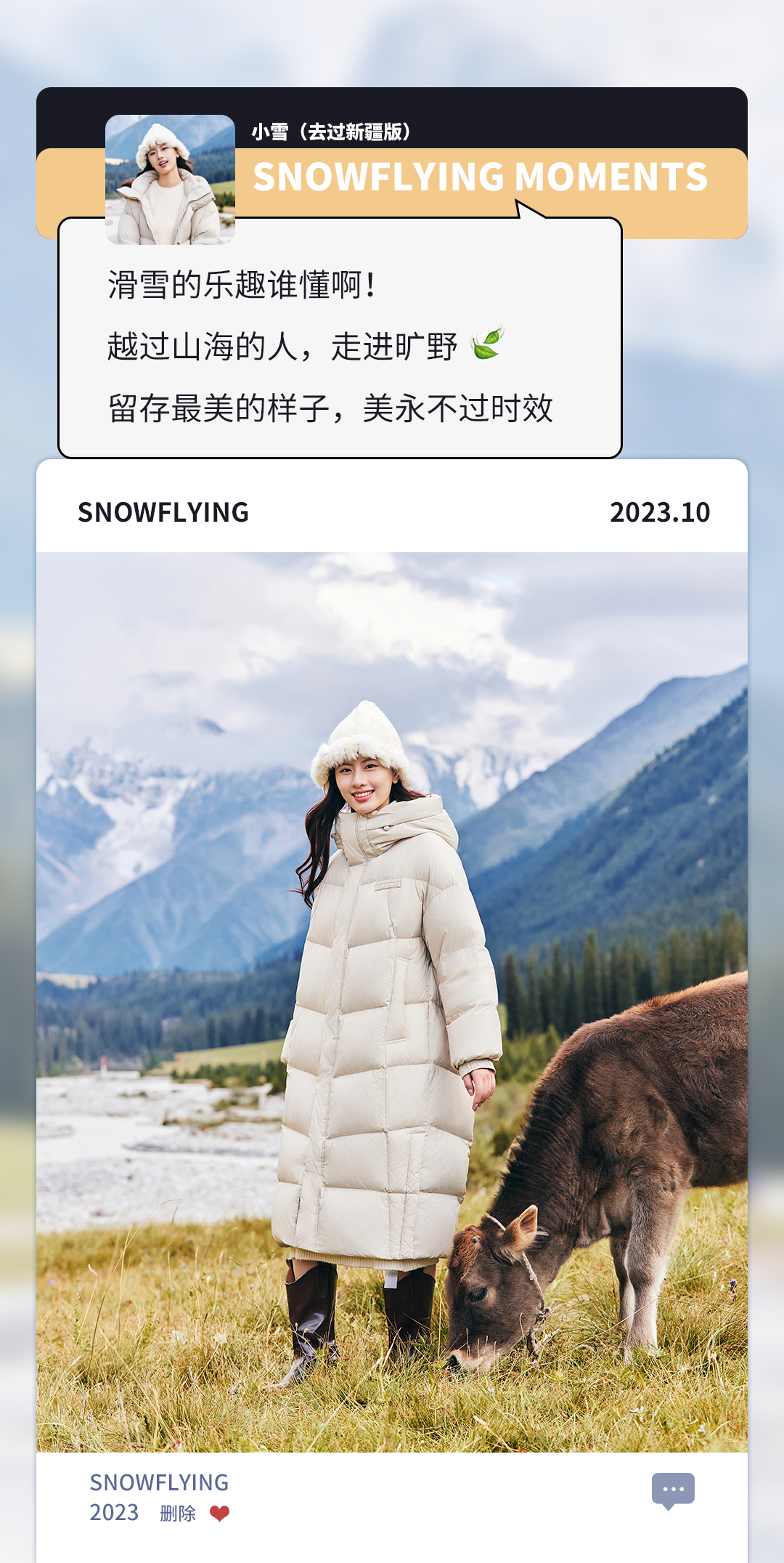推荐:「点击展开」模拟发朋友圈的方式依次介绍雪中飞羽绒服,吸引大家点击图中图片前往小程序购买。