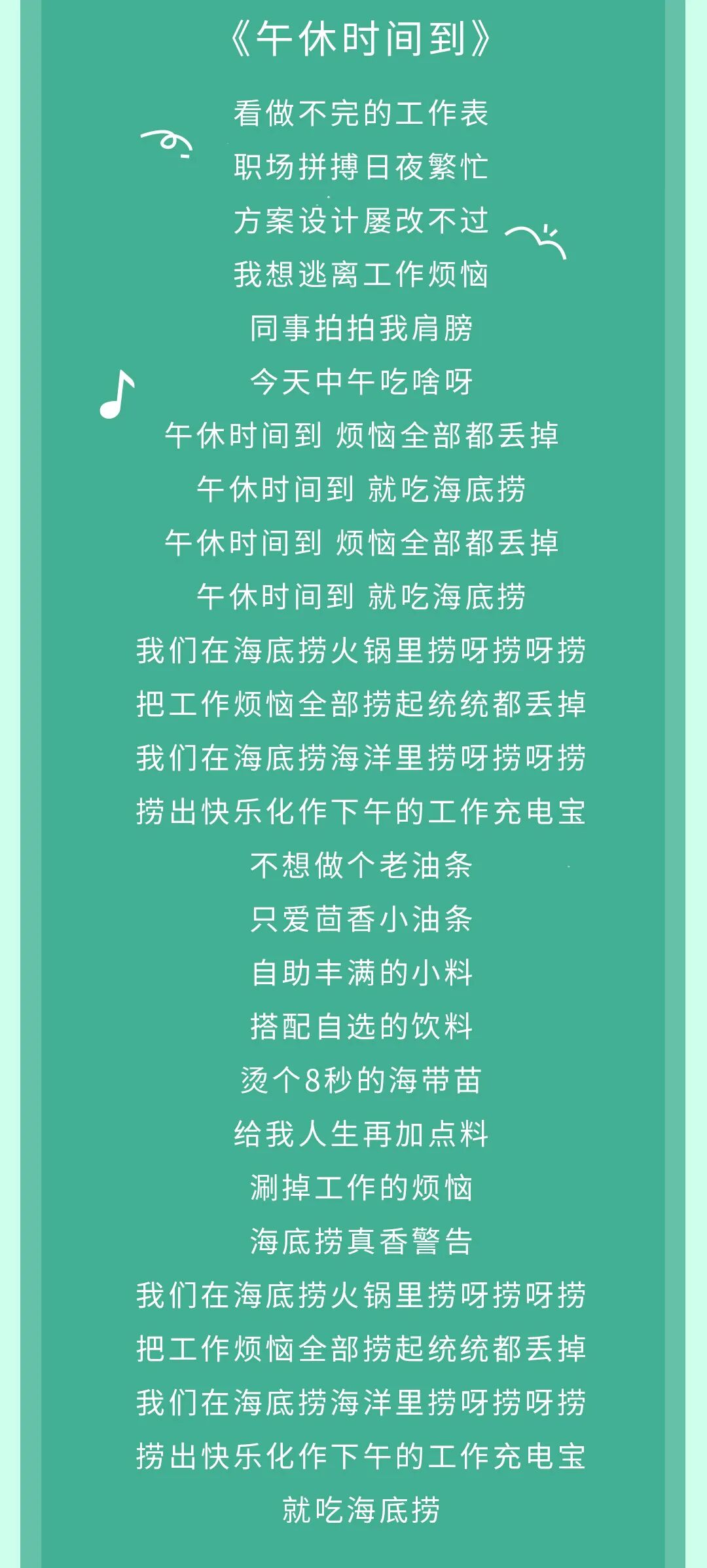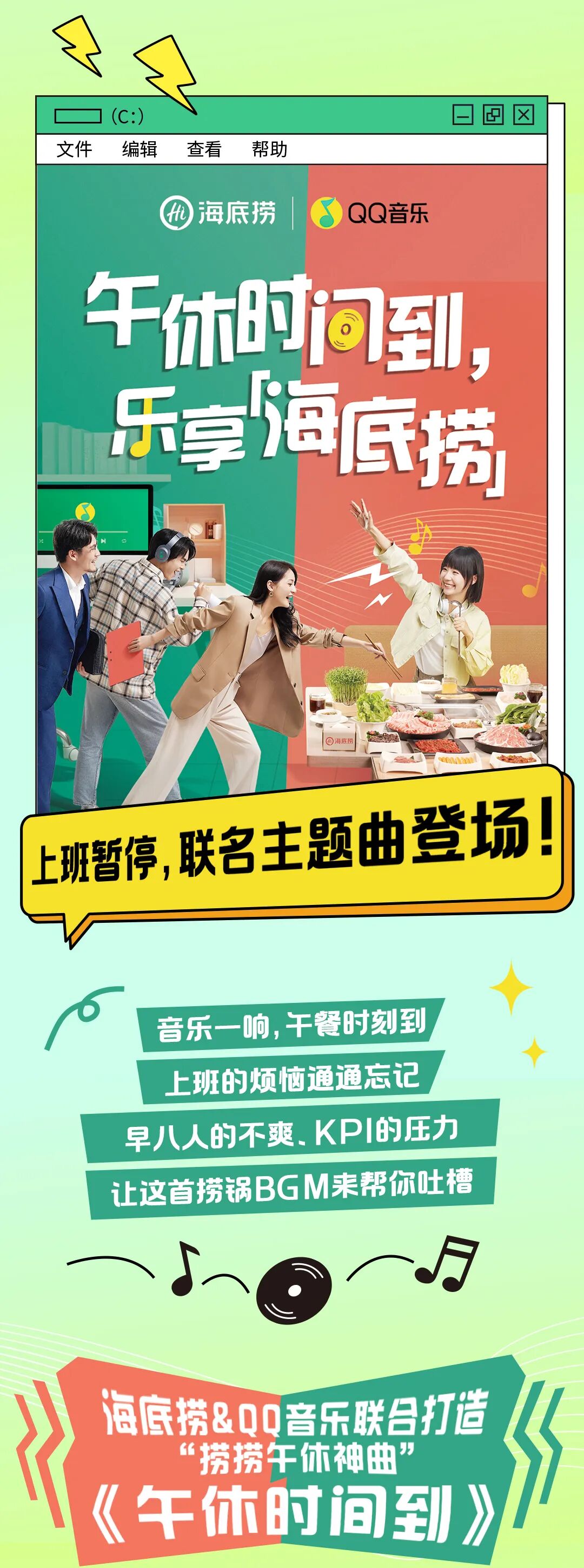 推荐:海底捞通过「点击展开」火锅促销活动规则、奖品和参与方式的介绍,然后「点击播放音频」分享神曲《午休时间到》,从而宣传海底捞火锅,吸引大家前往体验。