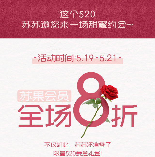 【520甜蜜约会】会员全场浪漫8折,快来和ta来一场甜蜜约会吧~