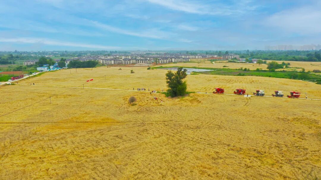 ↑ 龙泉驿区3000亩麦田丰收 图据龙泉驿发布