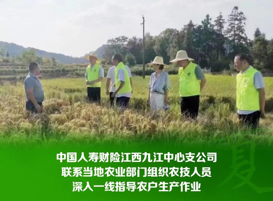 小得渐盈满,护航有国寿。中国人寿持续夯实“三农”服务基础与质量,不断健全完善农村基层服务网络和发展壮大农村基层队伍。截至目前,中国人寿财险公司服务区域覆盖36个省市自治区和单列市的1600多个县,已建成营销服务部、乡镇服务站、村服务点等各类服务网点6万个,服务团队近2000个,拥有含协保员在内的服务人员近5万人。下图为中国人寿财险江西九江中心支公司联系当地农业部门组织农技人员深入一线指导农户生产作业。
