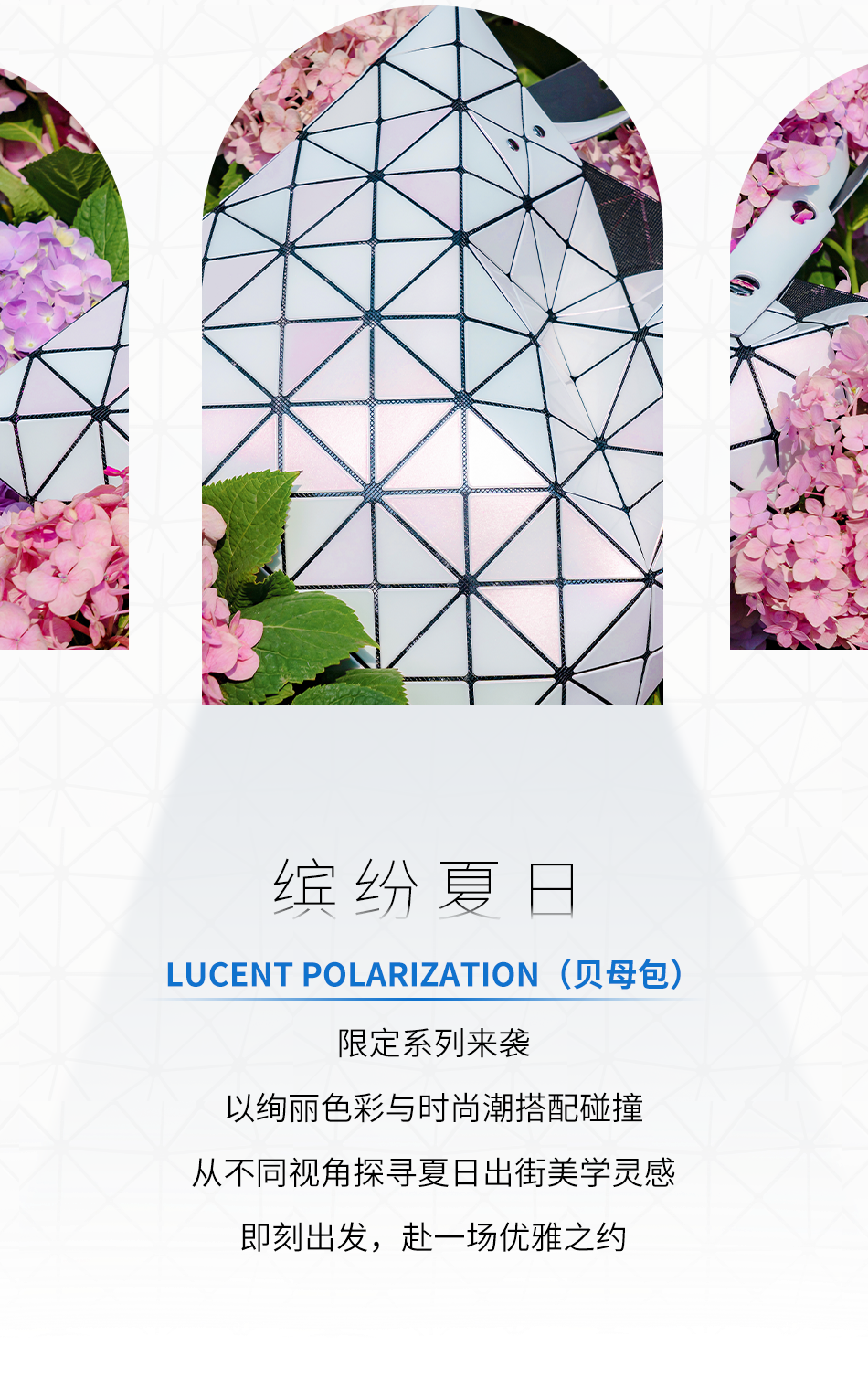 缤纷夏日,BAO BAO ISSEY MIYAKE推出2023年备受瞩目的LUCENT POLARIZATION贝母包,大家心心念念的Tote 6x6和Shoulder 3x4两款限定包型,也已在中国内地和中国香港地区上线。