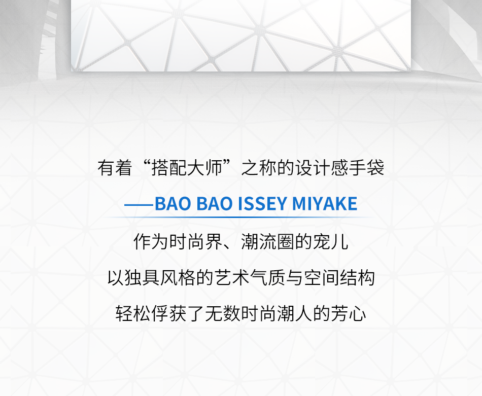 作为三宅一生旗下独具辨识度的配饰系列,BAO BAO ISSEY MIYAKE从一块三角片出发,将品牌独树一帜的标识贯穿至每个系列,打造有别于传统结构的全新手袋,即使没有显眼的logo,因自成一派的独特魅力,一跃成为包袋品牌中特别的存在。