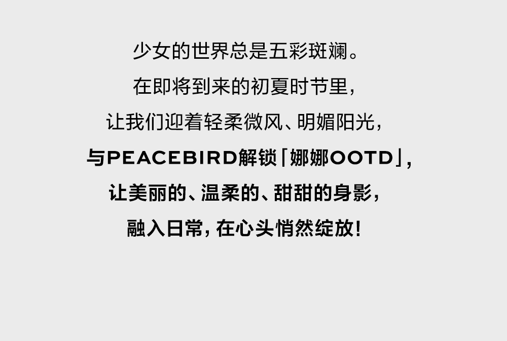 文章内容来源于公众号:PEACEBIRD太平鸟女装 点此可查看原文。若涉及版权问题或存在侵权情况,请及时与我们联系,我们将第一时间进行删除处理。