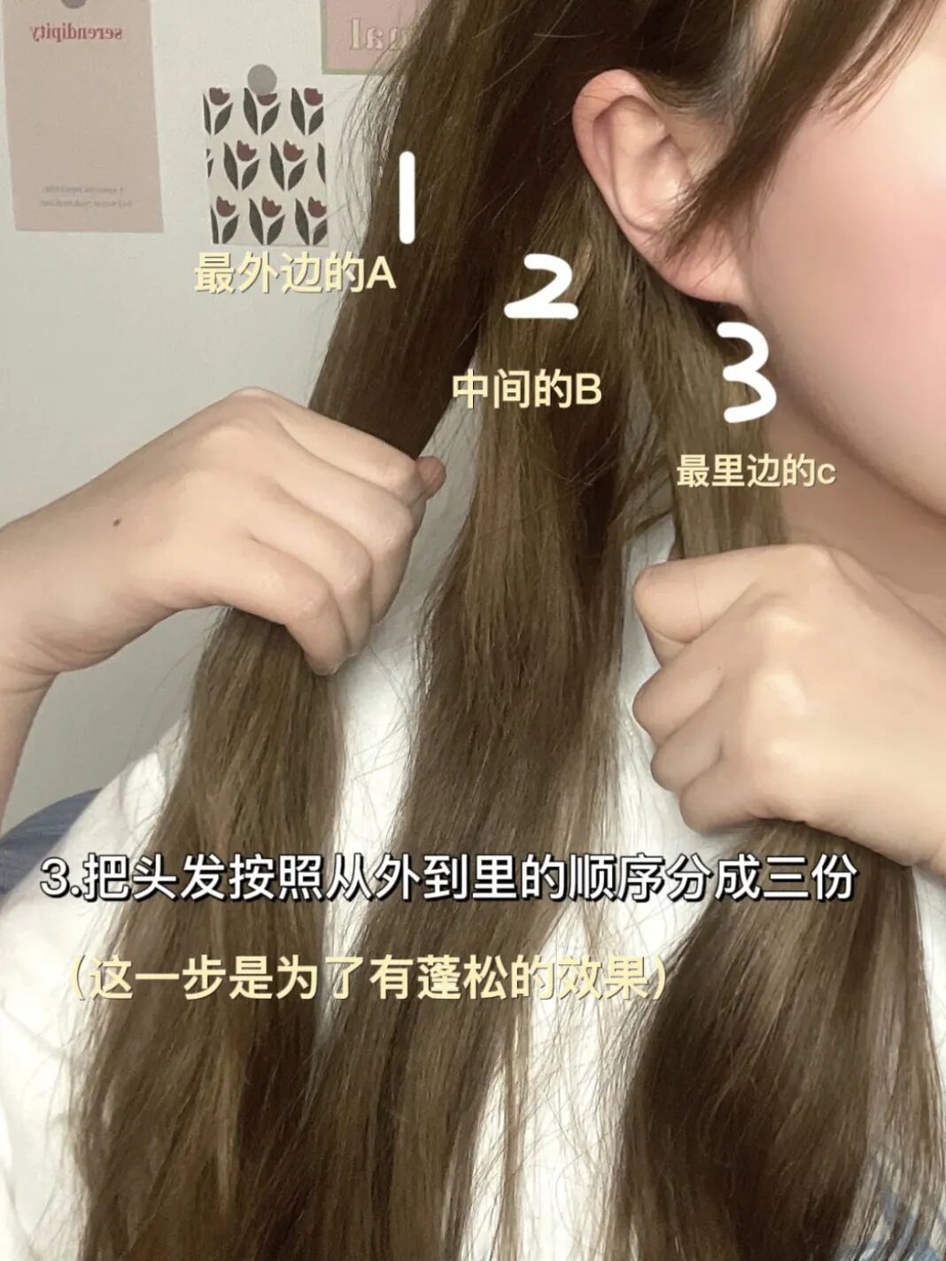 稍微复杂一些的法式麻花辫就要费手一些了,不过比起入门款,法式麻花辫交织更加富有层次感,变身“发量王者”不是梦。