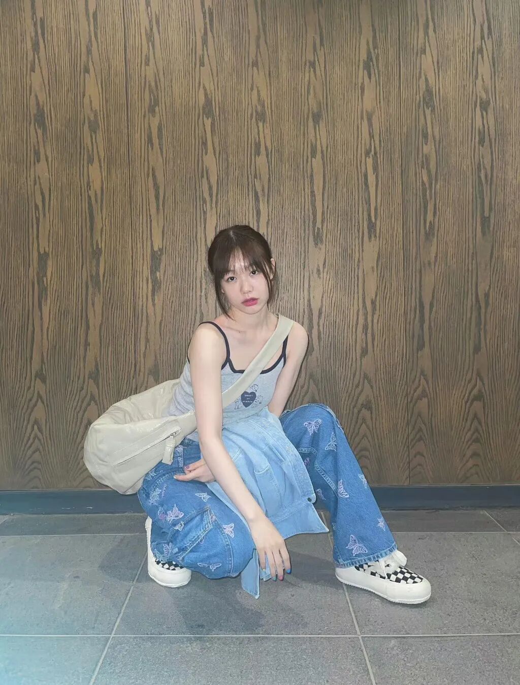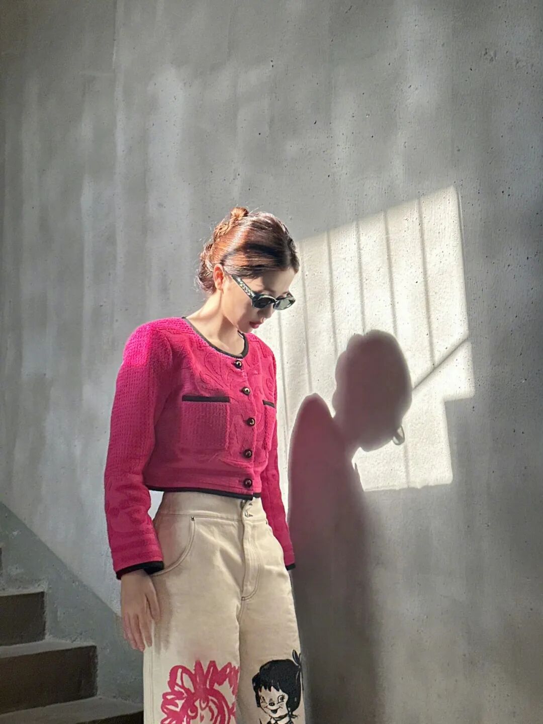 近年爆火的韩系辣妹造型,就很适合用丸子头搭配,不仅有增高颅顶特效,加上发圈或是发卡后,既日常又不会太过浮夸。