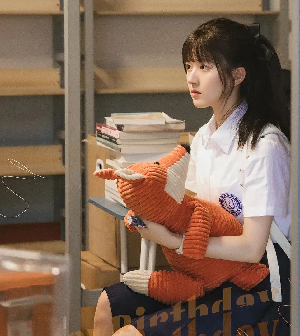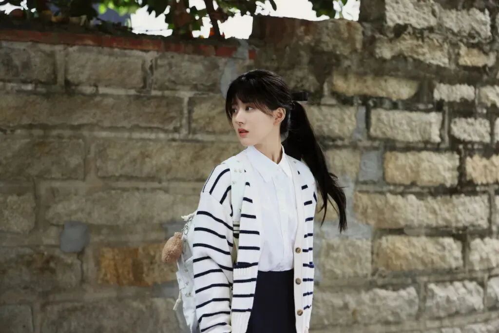 当当当当~试问哪位姐妹在学生时期没有扎过马尾辫!赵露思在剧中的高中造型便是以齐刘海+马尾辫的经典组合亮相。