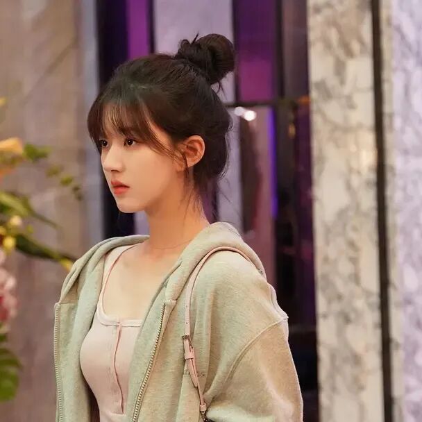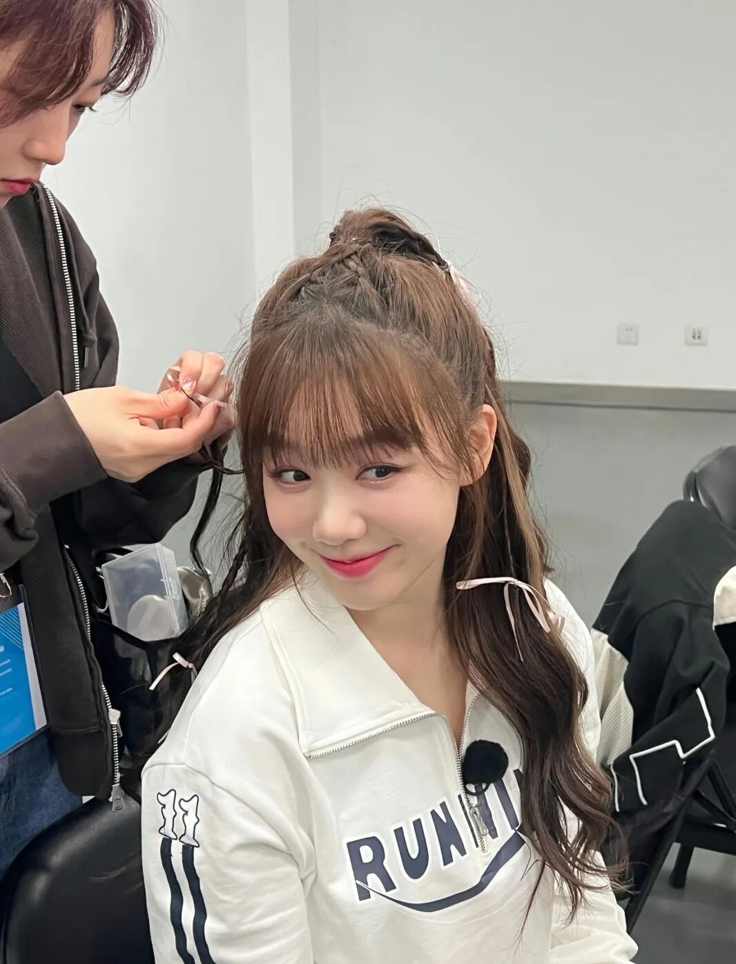 隔壁南韩的打歌舞台中,也不时用丸子头与空气刘海组合加持整体少女感。