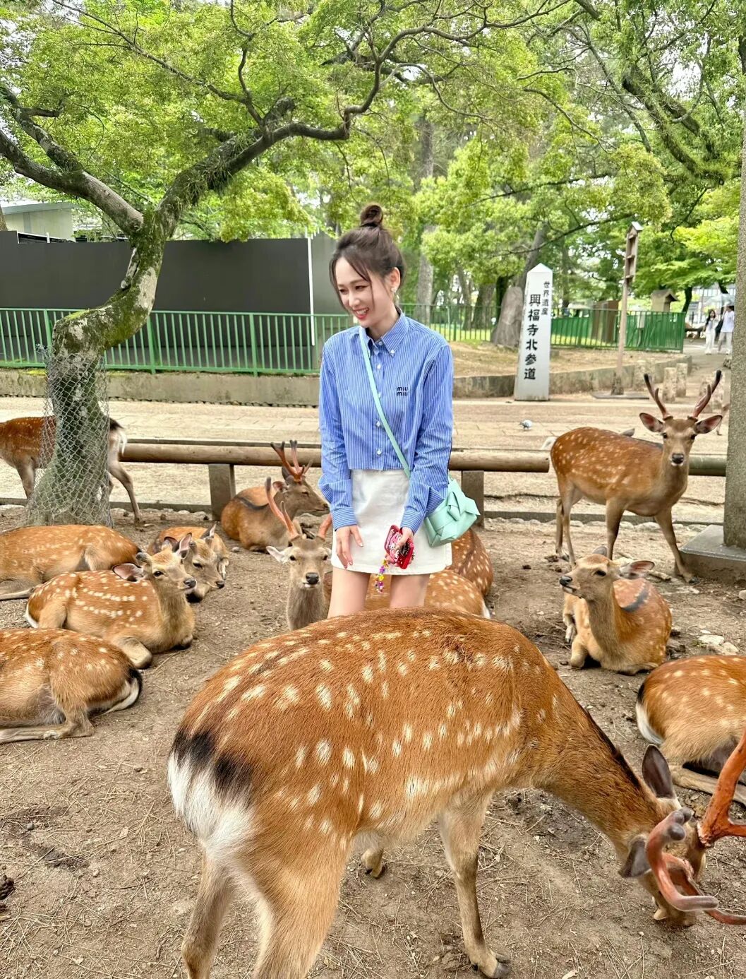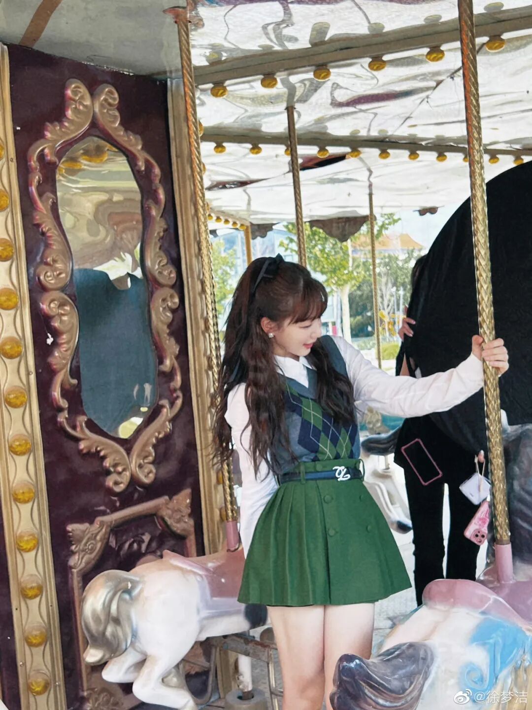 不过长期扎高马尾对发根不太友好,那么可以试试徐梦洁这种半高马尾!
