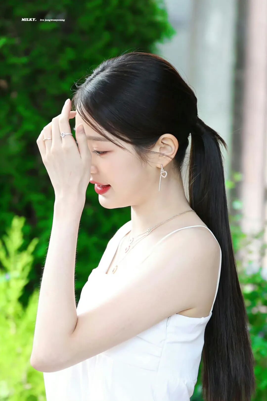 素有“南韩初恋脸”之称的张元英,便多次以低马尾造型亮相。一袭白裙,一头乌发,初恋系的氛围要多少有多少。
