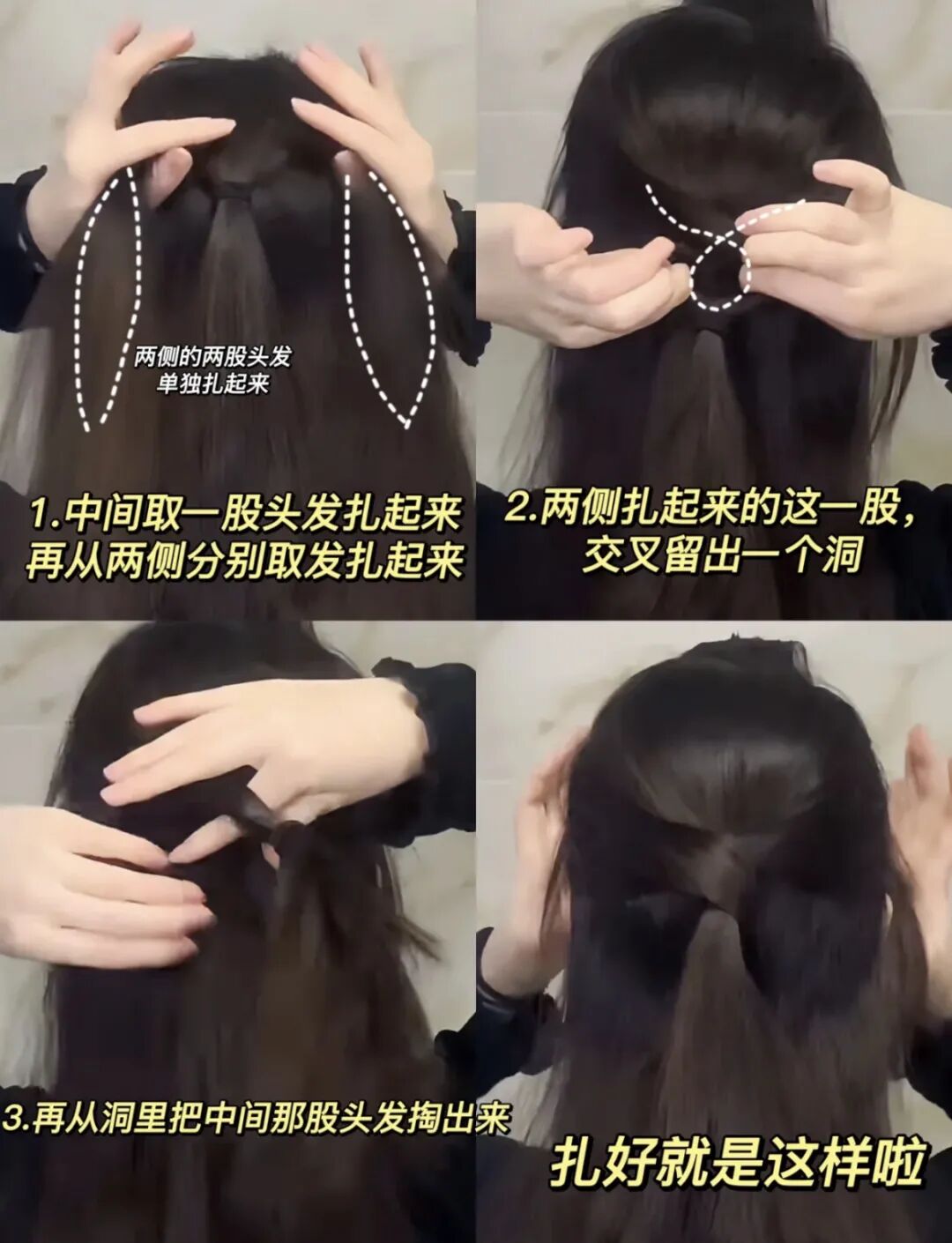 对于难度较高的低丸子头造型,秘诀便是纹理感!手残星人可以跟着图片学起来咯!