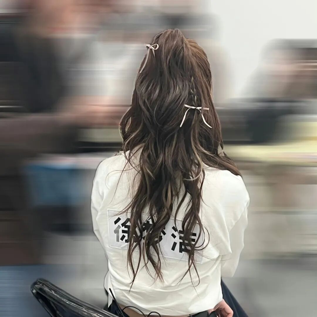 并且,操作起来也更加简单。用发梳挑出三分之一左右的头发,在头顶下方扎上发绳,最后用丝带或是发夹点缀即可。