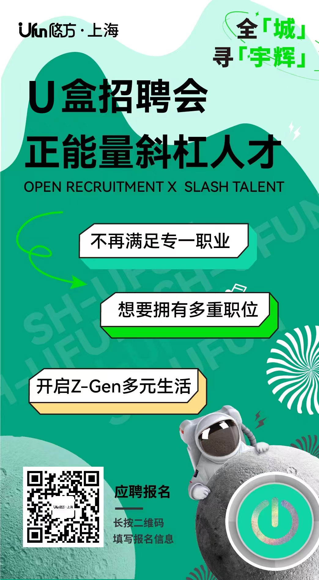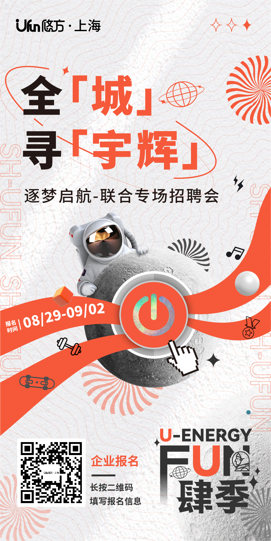 悠方U盒招聘会为你提供多重职位就业机会,精彩多元人生一键开启!报名时间即日起-8月22日12点12分,招聘会将于8月29日-9月2日每日10:00-20:00举办。