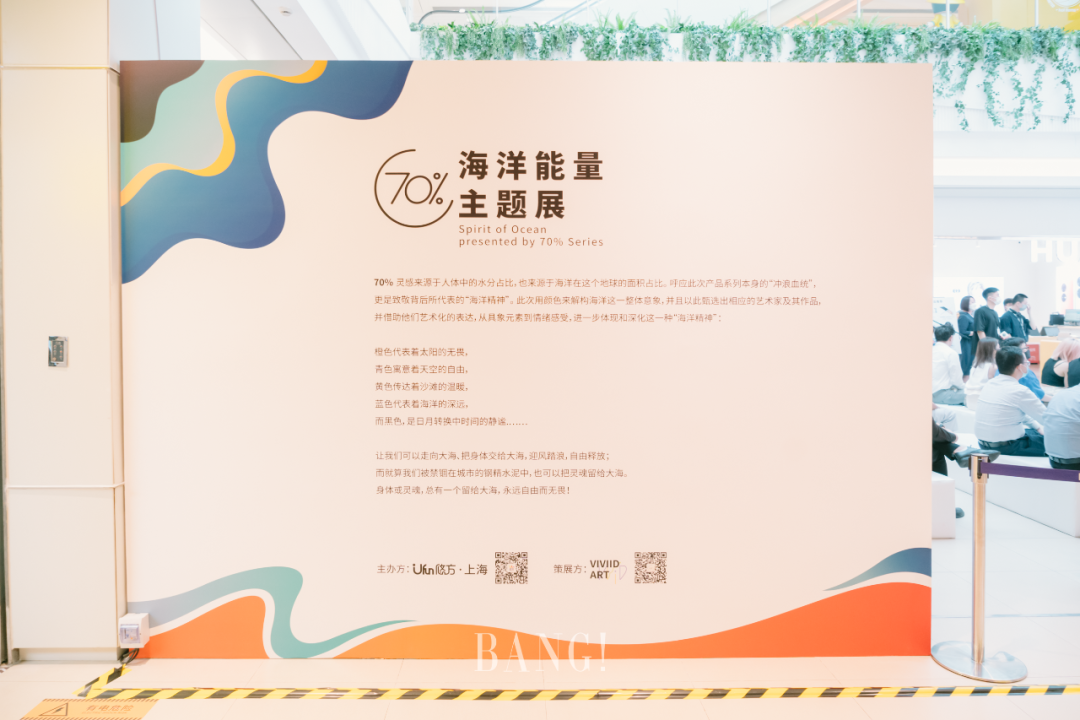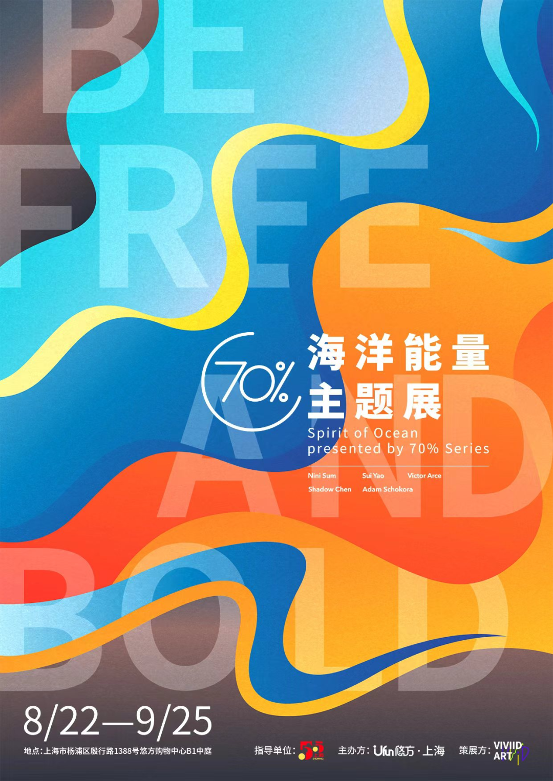 8月22日-9月25日,70%系列海洋能量主题展联合5大艺术家,以黑、蓝、橙、青、黄5种颜色为你打造一片都市中的海洋。