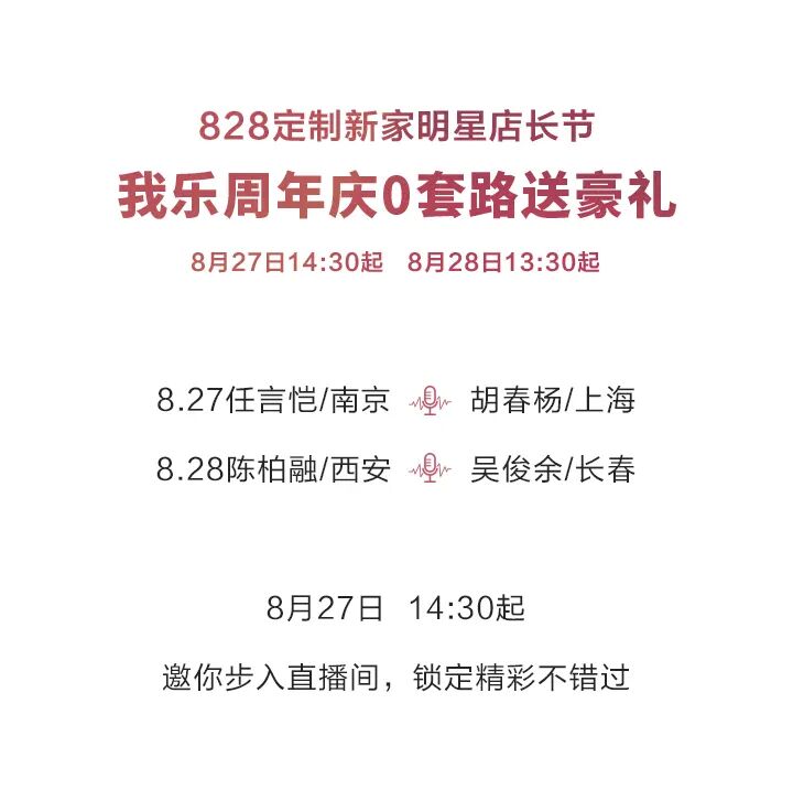 我乐家居周年庆0套路送豪礼,更有明星店长连麦直播挑战单日业绩!明天见!