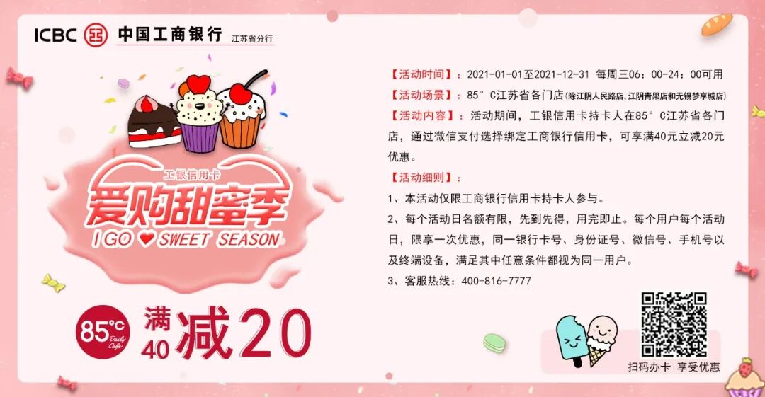 工商银行江苏省各店消费满40减20元