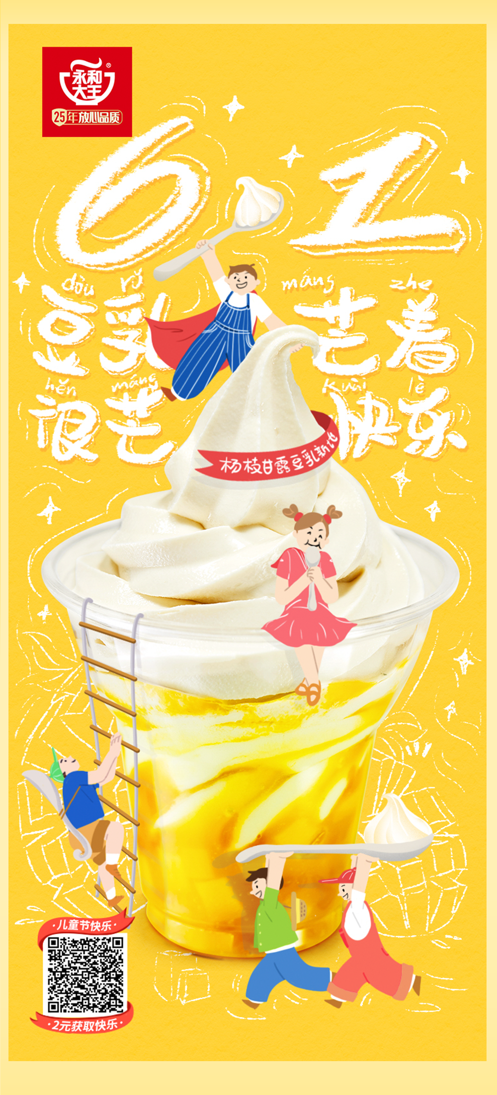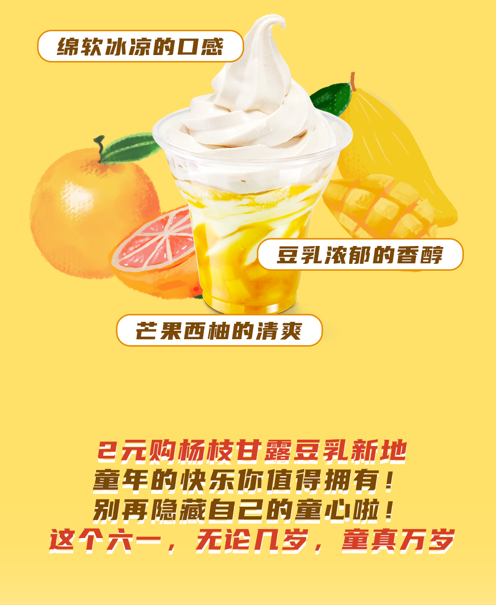 2、杨枝甘露豆乳新地2元扫码购推广活动日期为即日起至2021年6月6日,每人限领取一次,活动即日起生效。仅在永和大王部分餐厅堂食或外带适用,机场、火车站等交通枢纽餐厅、旅游景点等门店不参加此次活动。具体请以餐厅公示为准。除所推广产品外,其他物品不在售卖范围内。