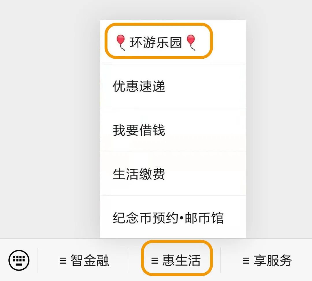 点击公众号主页菜单【惠生活-环游乐园】