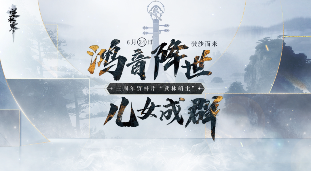 逆水寒三周年资料片“武林萌主”定档6月24日!新流派<鸿音>、新体验<养育>、新激情<风云争霸>以及诸多硬核丰富的重磅干货与缤纷福利即将降临,真实江湖边界将再度被拓宽,极致的武侠体验也将再度升格!