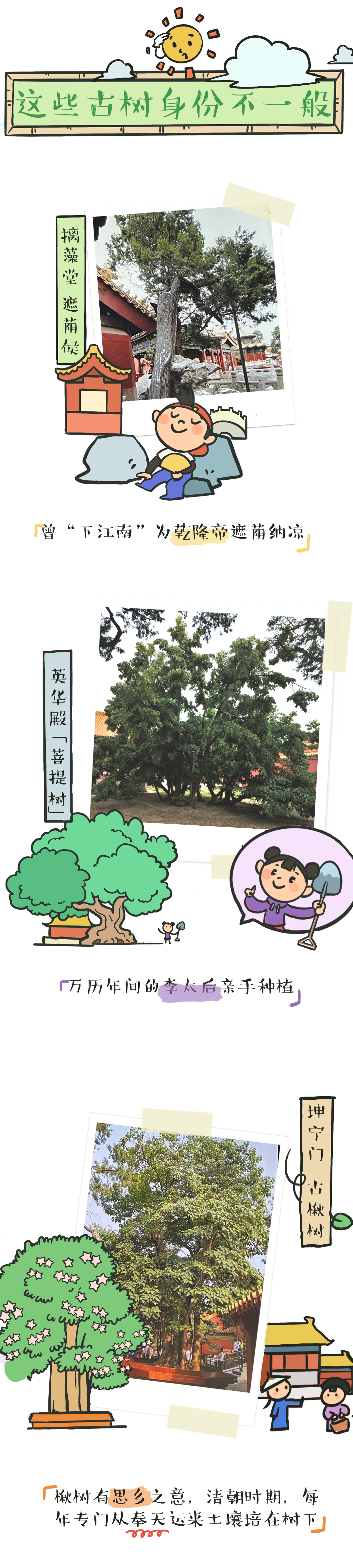 这些古树名木生活在故宫中的不同地方,在儿童节即将到来之际,让我们一同走近这些故宫里的“大朋友”,探索故宫里的自然奥秘!