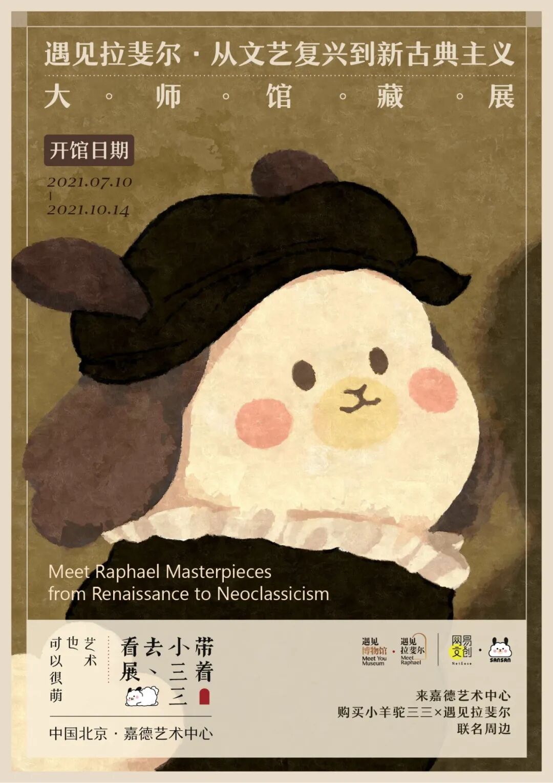 2020年,恰逢拉斐尔逝世五百周年,为纪念这位天才艺术家,包含意大利在内的多个国家举办了各类展览和活动,其中大部分被纳入意大利文化部专门为此成立的国家委员会的框架之下。国内也由此开启《遇见拉斐尔·从文艺复兴到新古典主义大师馆藏展》,小羊驼三三将作为“萌系探展大使”参与本次展览的联合发起活动。