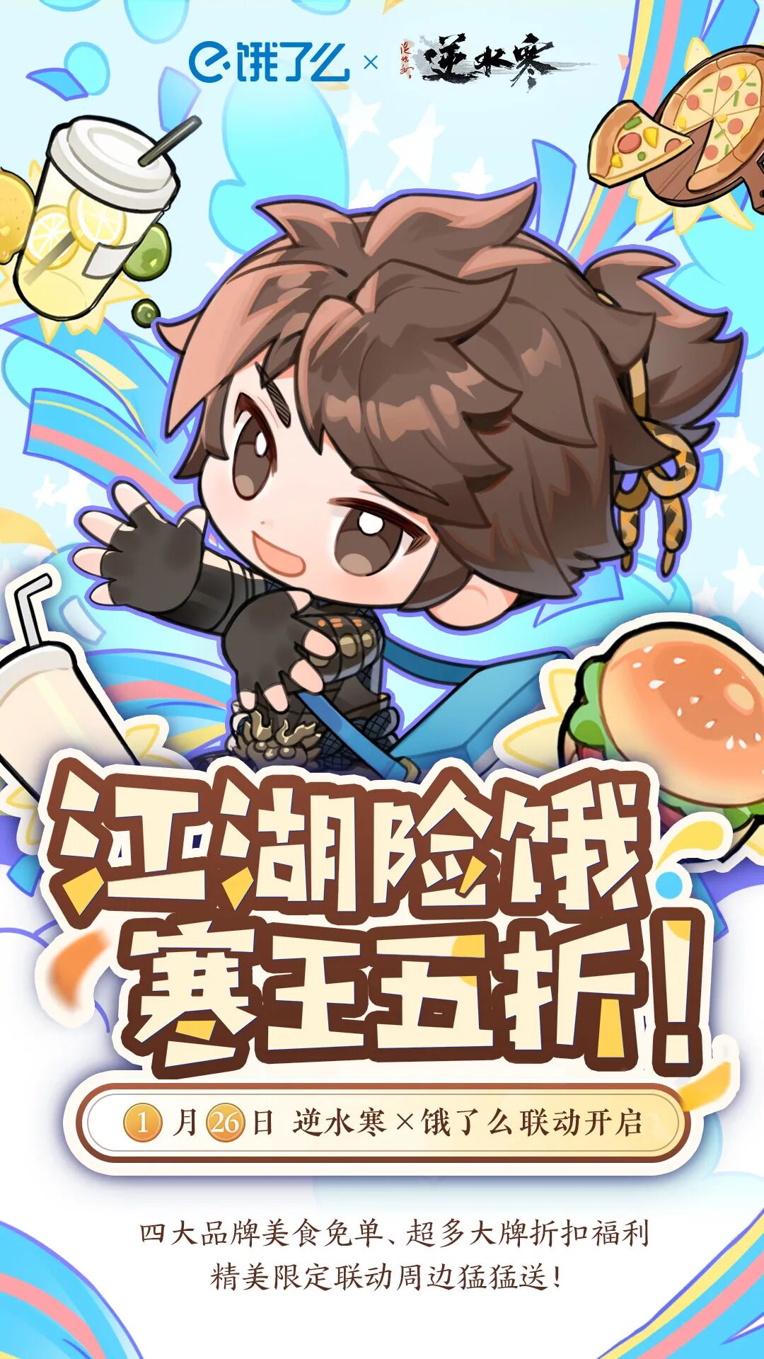 活动专场所有超值套餐统统5折起,广州、武汉、上海、杭州、南京五大城市,在饿了么购买寒王指定套餐,更有十万份【逆水寒x饿了么】联动周边随餐赠送,数量有限,抢完为止。