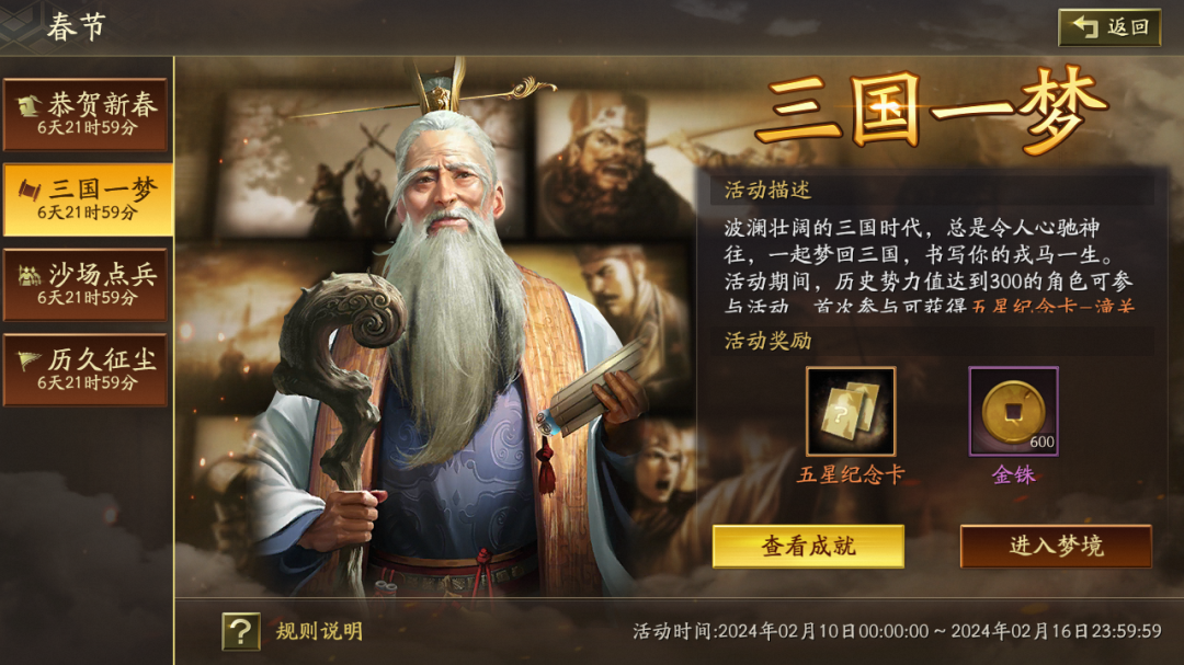 活动介绍:史书不会局限勇者的结局,你的选择将创造全新的历史。主公们可在三国一梦活动中,一起回到三国,书写你的戎马一生!